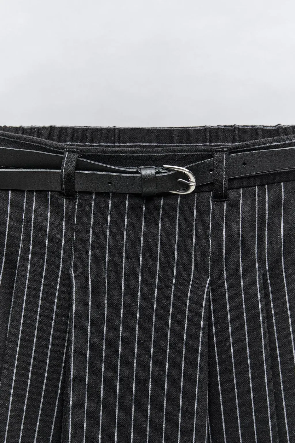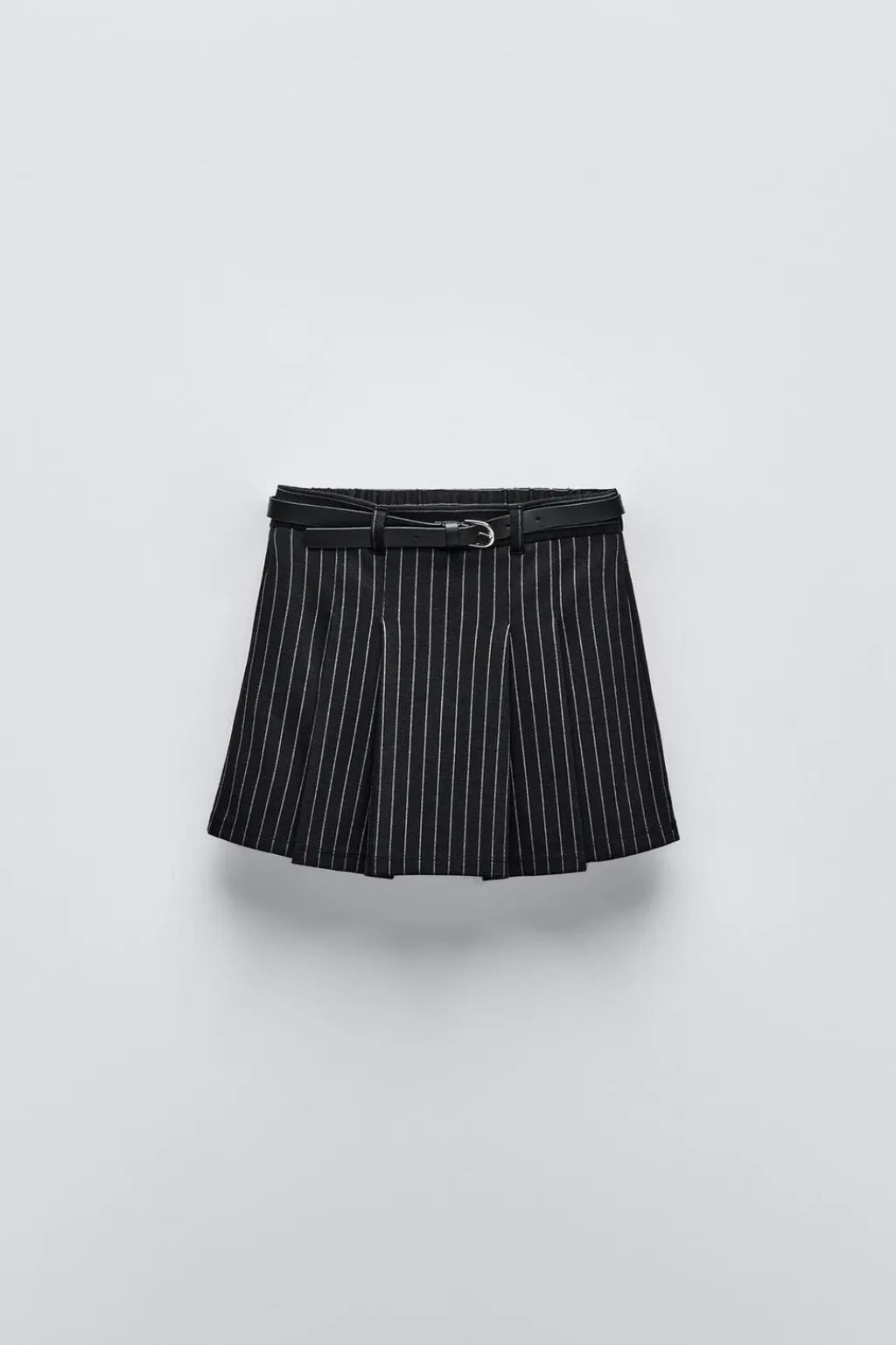 Falda tipo bermuda con cinturilla elástica y cinturón ajustable en cintura. Detalle tablas en delantero.
