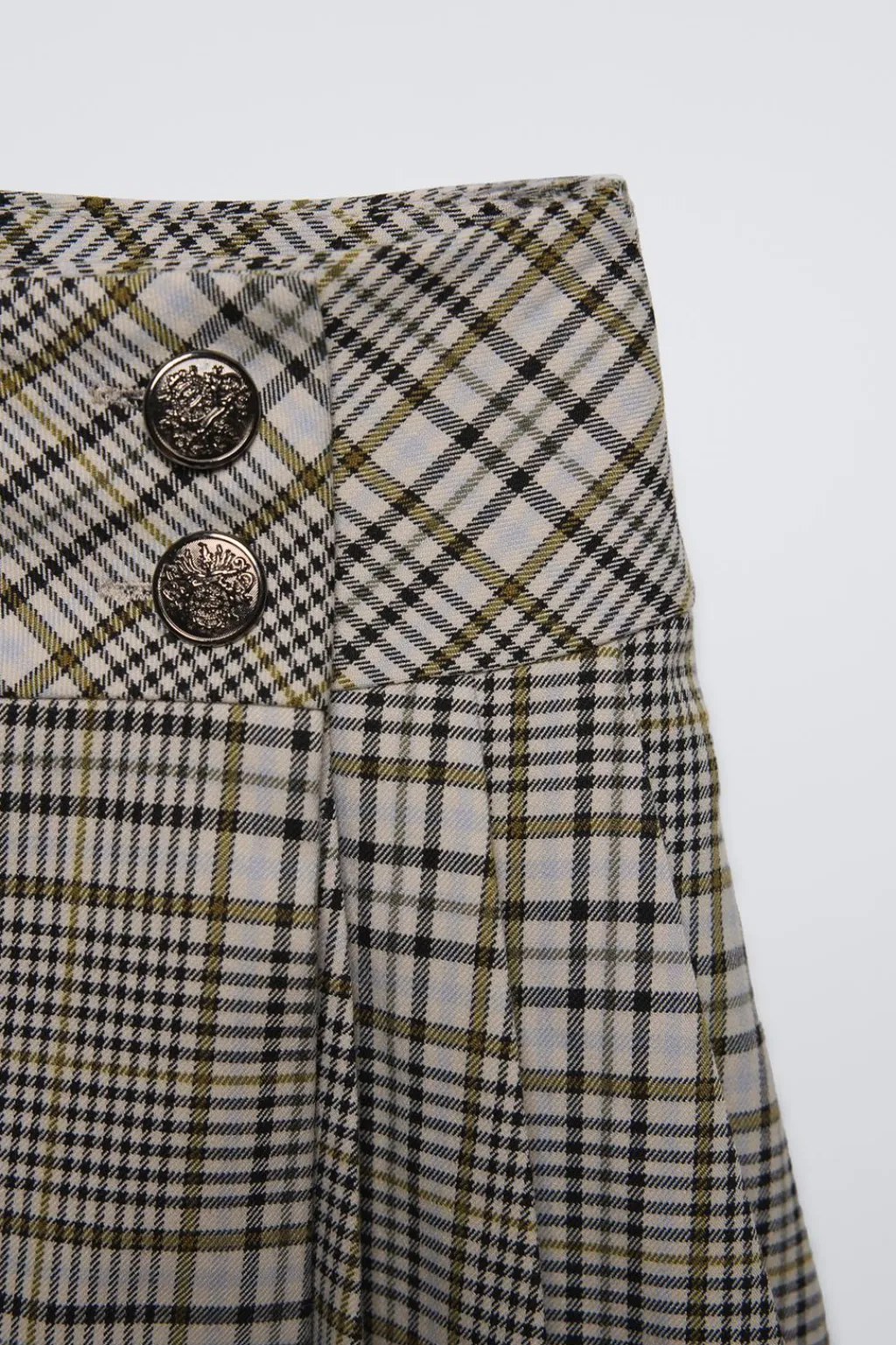 Falda con cinturilla interior ajustable. Cierre con botones en lateral. Falso bolsillo con tapeta en lado. Estampado cuadros.