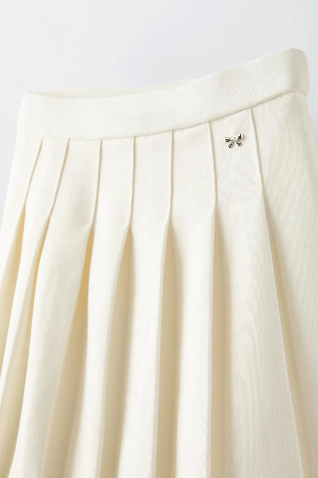 Falda con cinturilla elástica. Aplique lacito en delantero y detalle tablas.