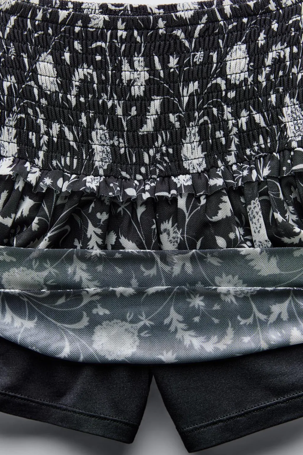 Falda tipo bermuda con cinturilla elástica. Detalle volantes en bajo.