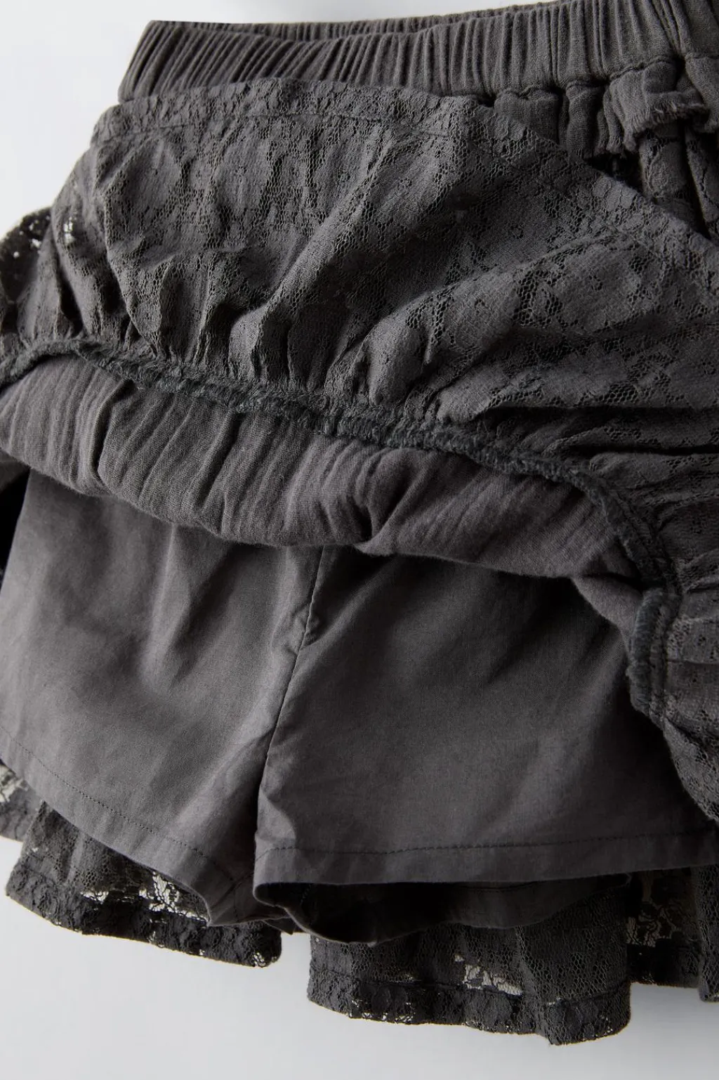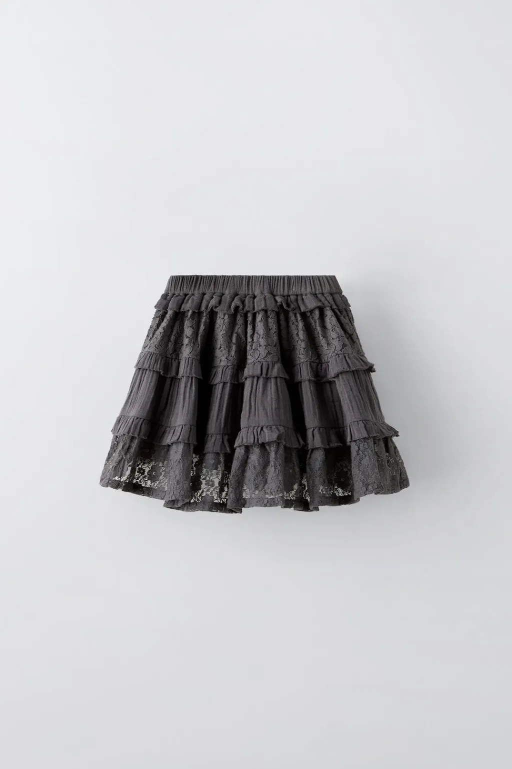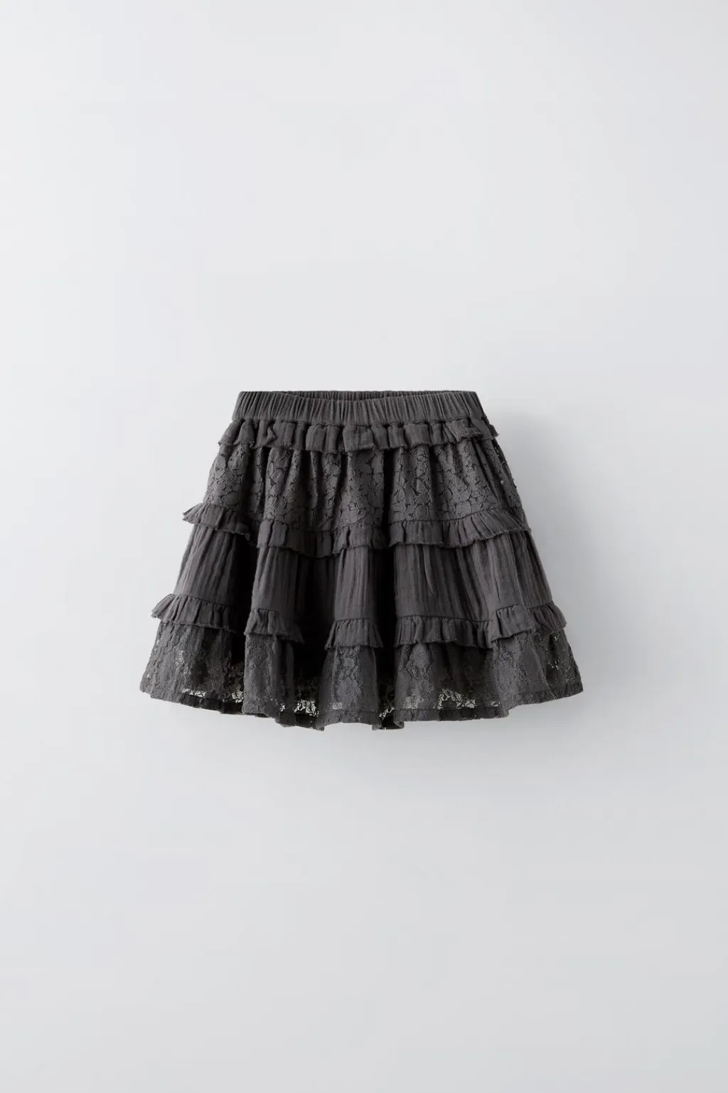Falda con cinturilla elástica. Detalle volantes con encaje.