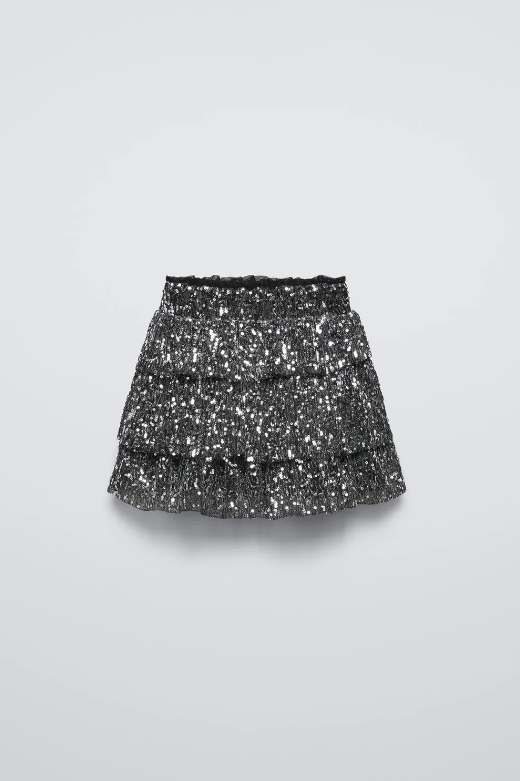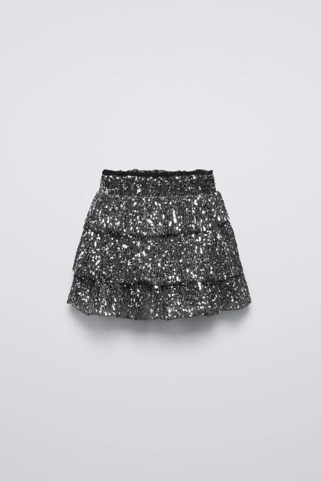 Falda con cinturilla elástica. Detalle volantes y aplique lentejuelas.