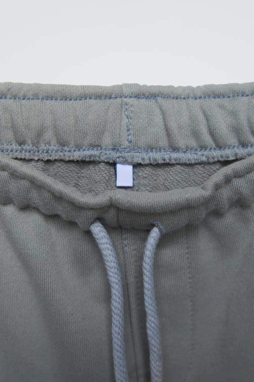 Confeccionado en un tejido de algodón y tipo balloon fit. En la cinturilla elástica tiene unos cordones ajustables y una etiqueta. Como detalle tiene unos pespuntes a contraste en el delanteroy los laterales. El bajo esta acabado con goma.