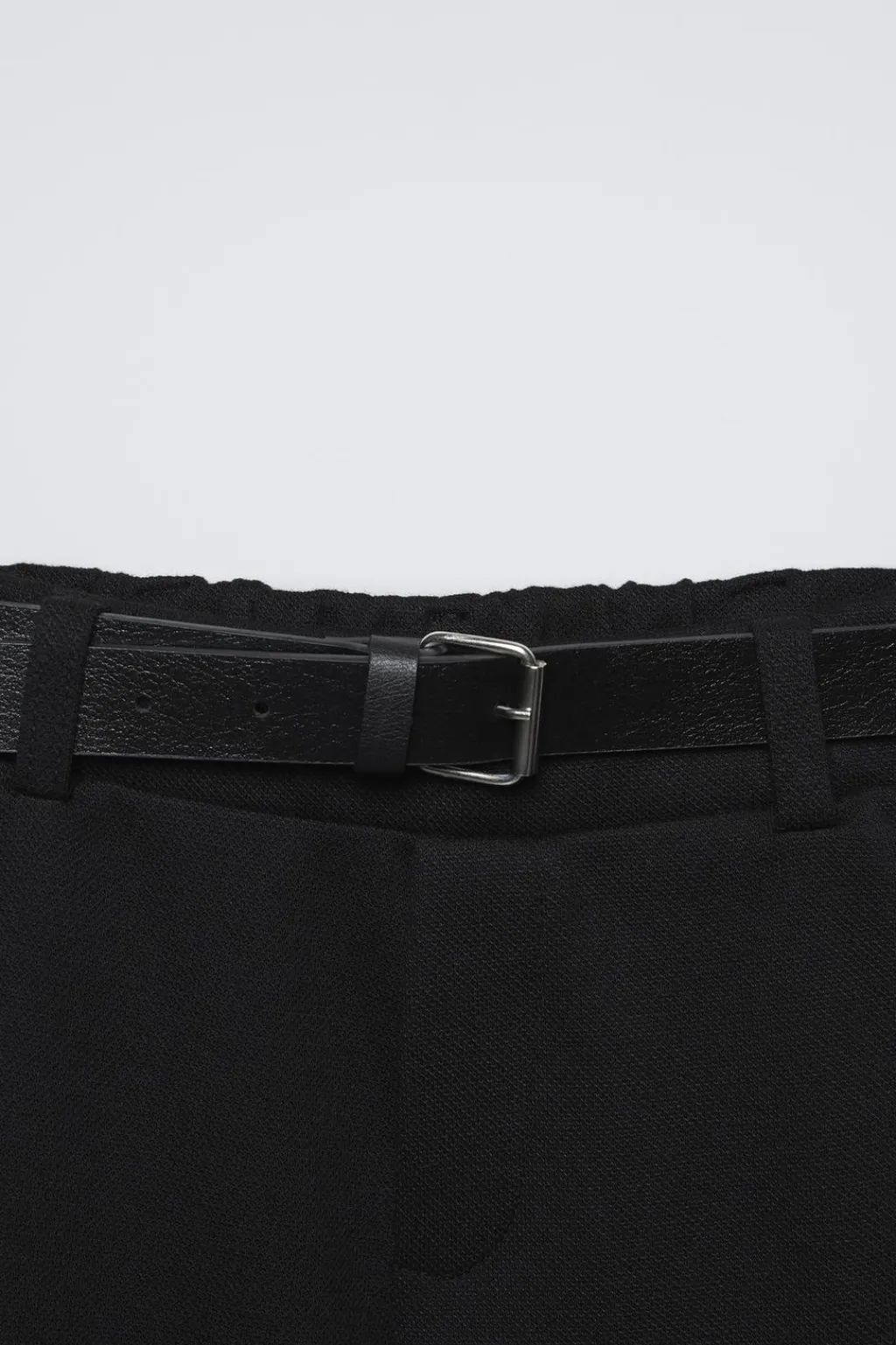 Pantalón con cinturilla elástica y aplique cinturón ajustable frontal.
