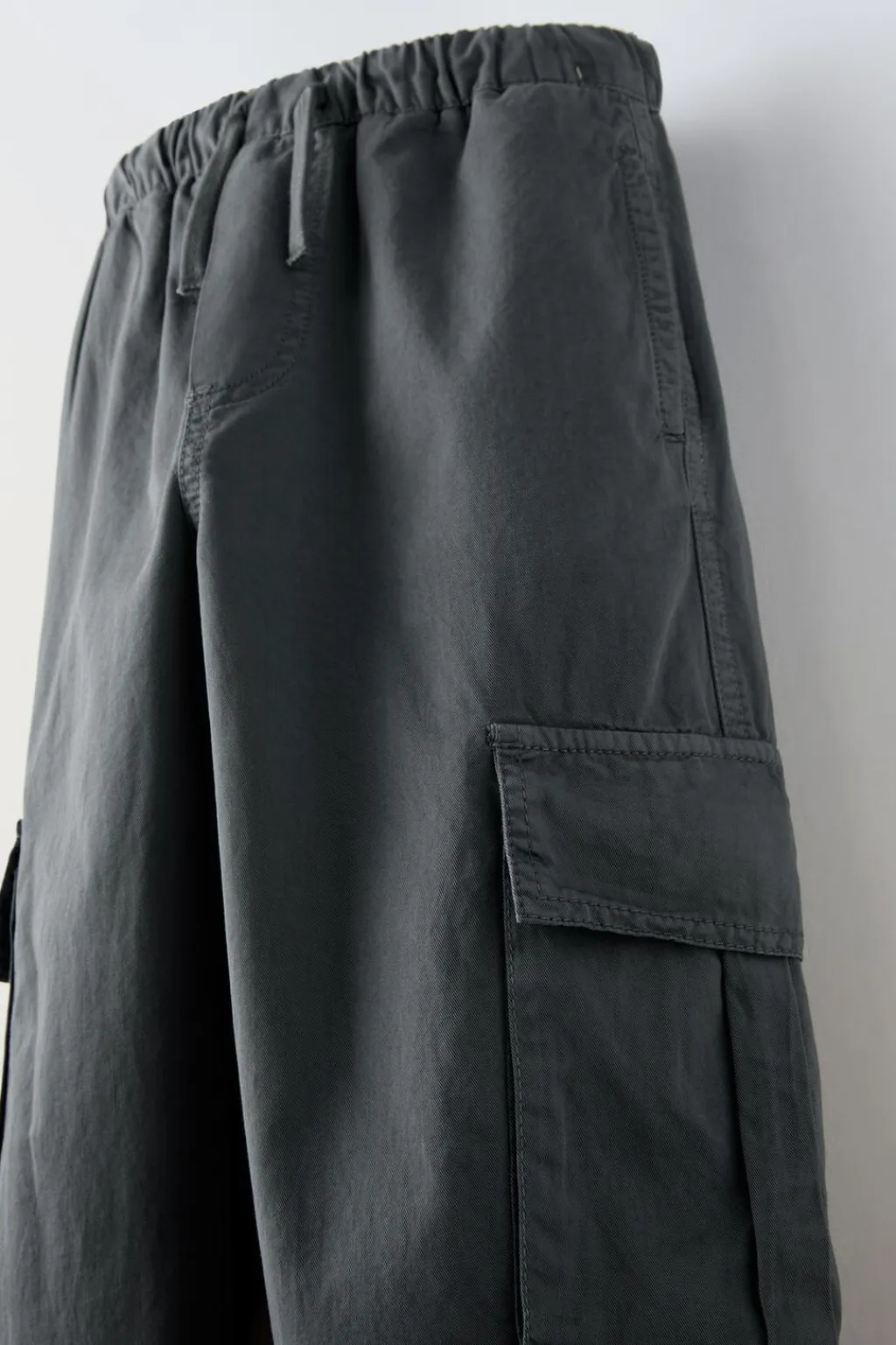 Pantalón straight con cinturilla elástica y cordones ajustables. Bolsillos en delantero, tipo plastrón en espalda y con tapetas en laterales.