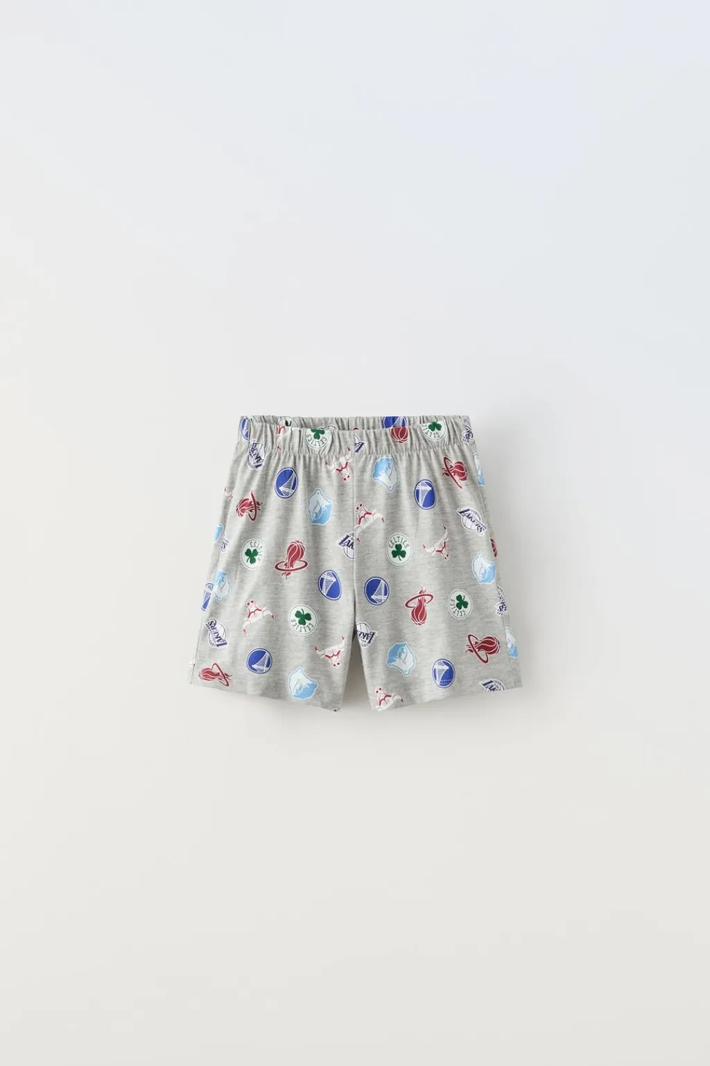 Pijama dos piezas. Camiseta con cuello redondo y manga corta. Bermuda con cinturilla elástica. Estampado EQUIPOS NBA ©.