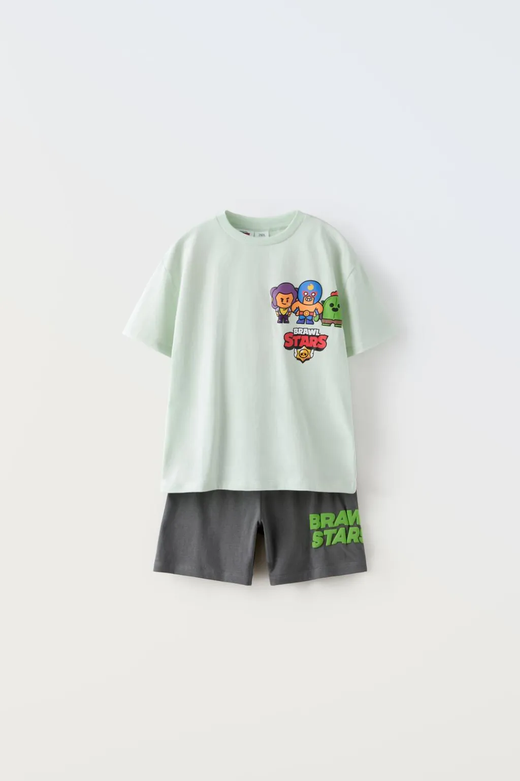 Conjunto dos piezas. Camiseta con cuello redondo y manga corta. Bermuda con cinturilla elástica. Estampado BRAWL STARS © SUPERCELL OY.