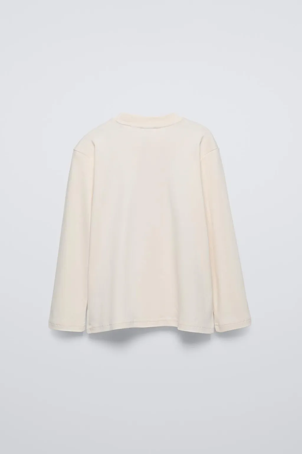 Pijama dos piezas. Camiseta con cuello redondo y manga larga. Pantalón con cinturilla elástica y aplique etiqueta frontal.