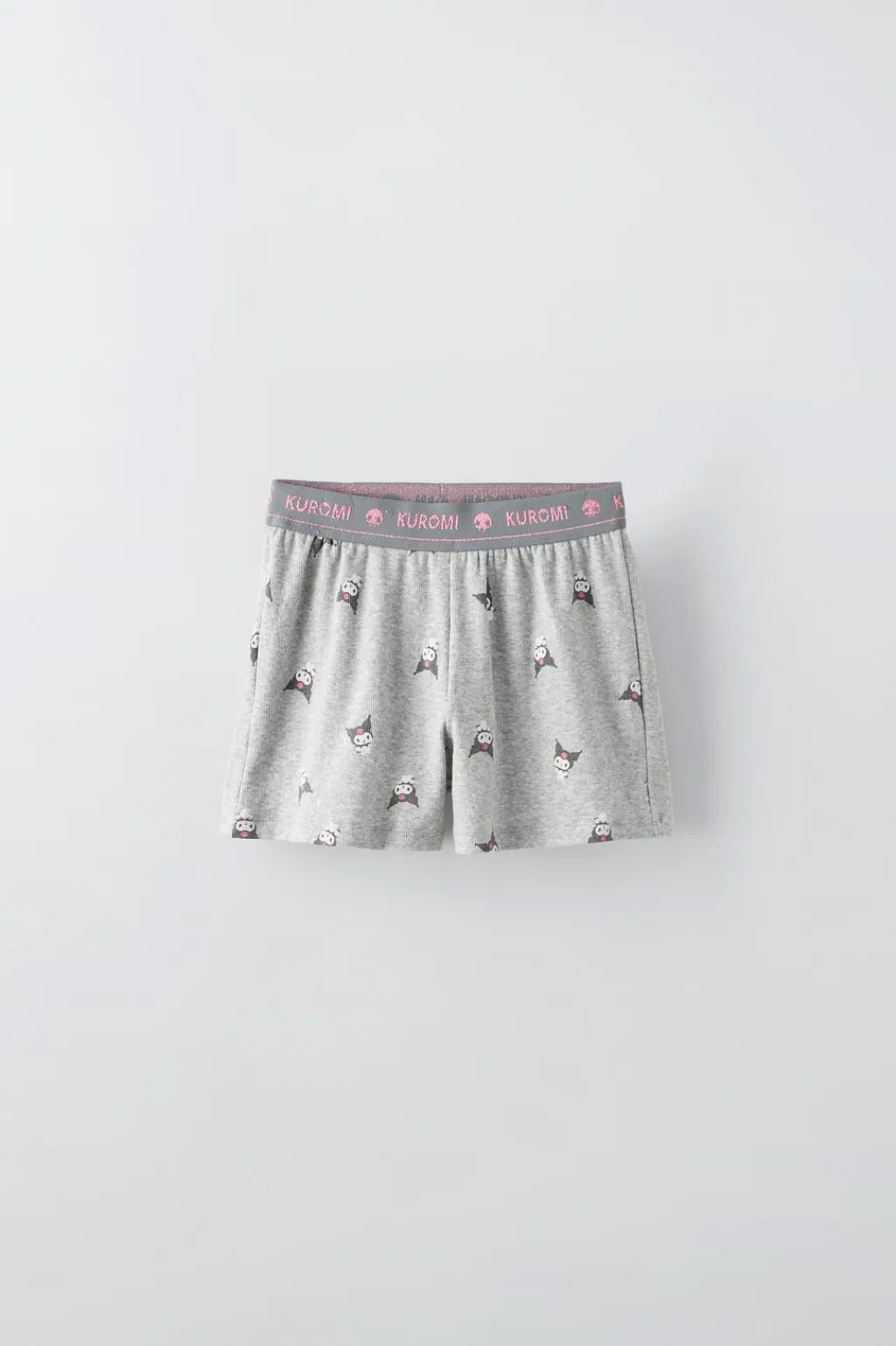 Pijama dos piezas. Camiseta con cuello redondo y manga corta. Bermuda con cinturilla elástica y detalle brillo. Estampado KUROMI © SANRIO.