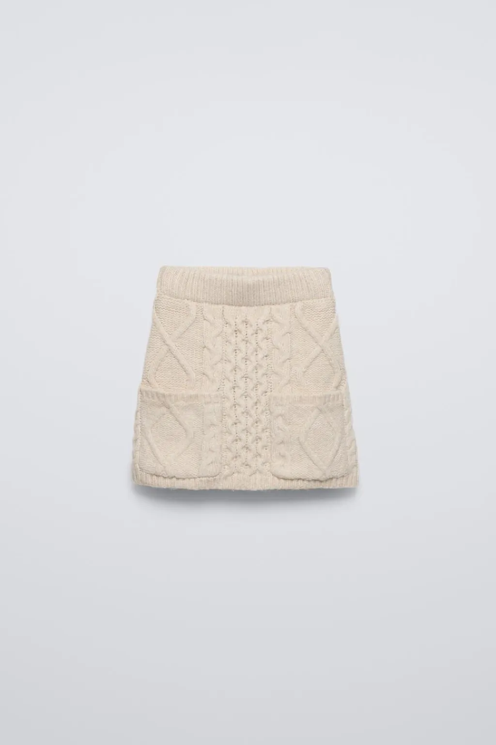 Falda de punto con cinturilla elástica. Bolsillos de tipo plastrón en delantero.