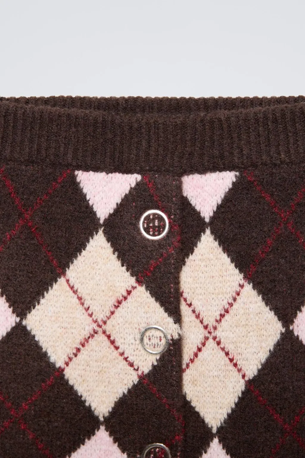 Falda con con cinturilla elástica y cierre botonadura a presión en delantero. Estampado rombos.