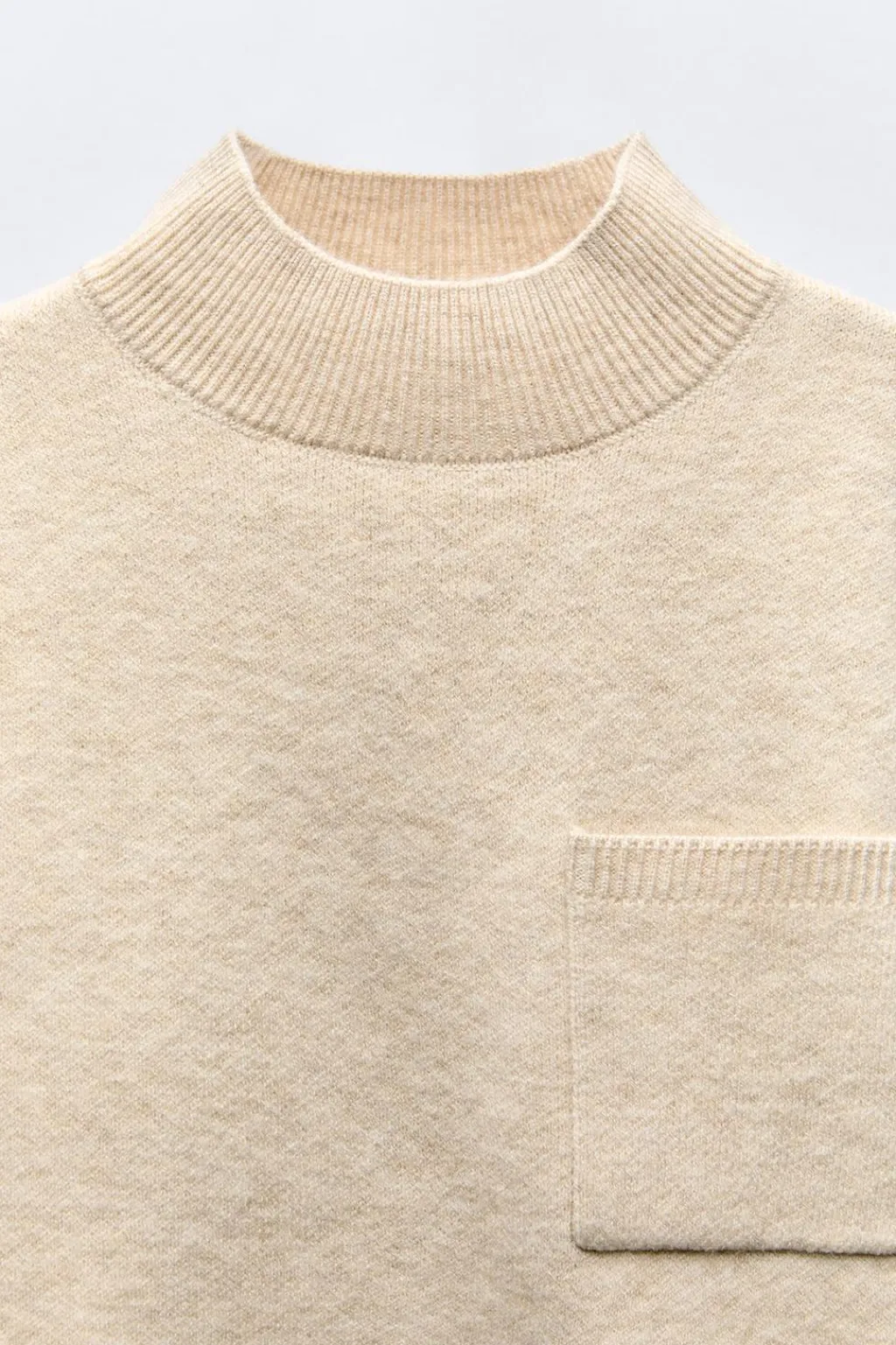 Jersey con cuello subido y manga larga. Bolsillo de tipo plastrón en pechera.