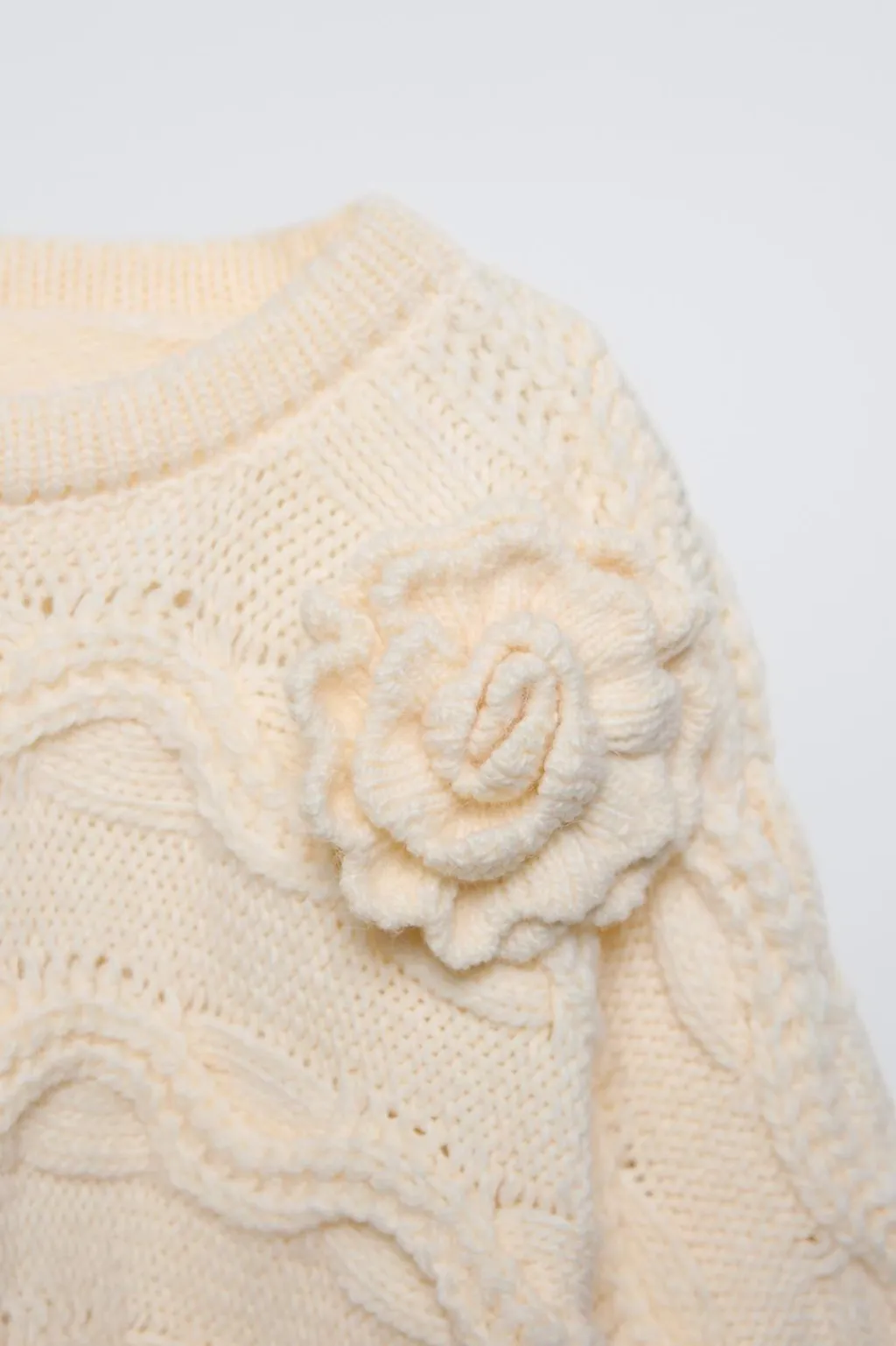 Capa de punto con cuello redondo. Aplique flor en pechera.