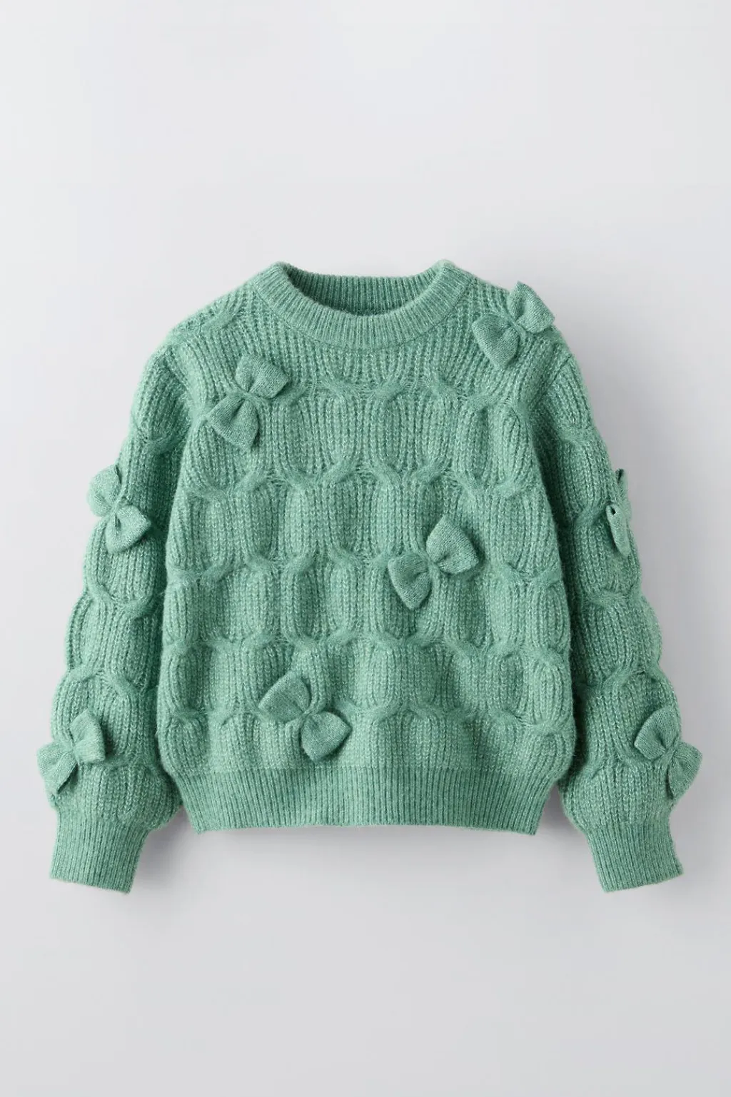 Jersey con cuello redondo y manga larga. Aplique lazos combinados en delantero y mangas.