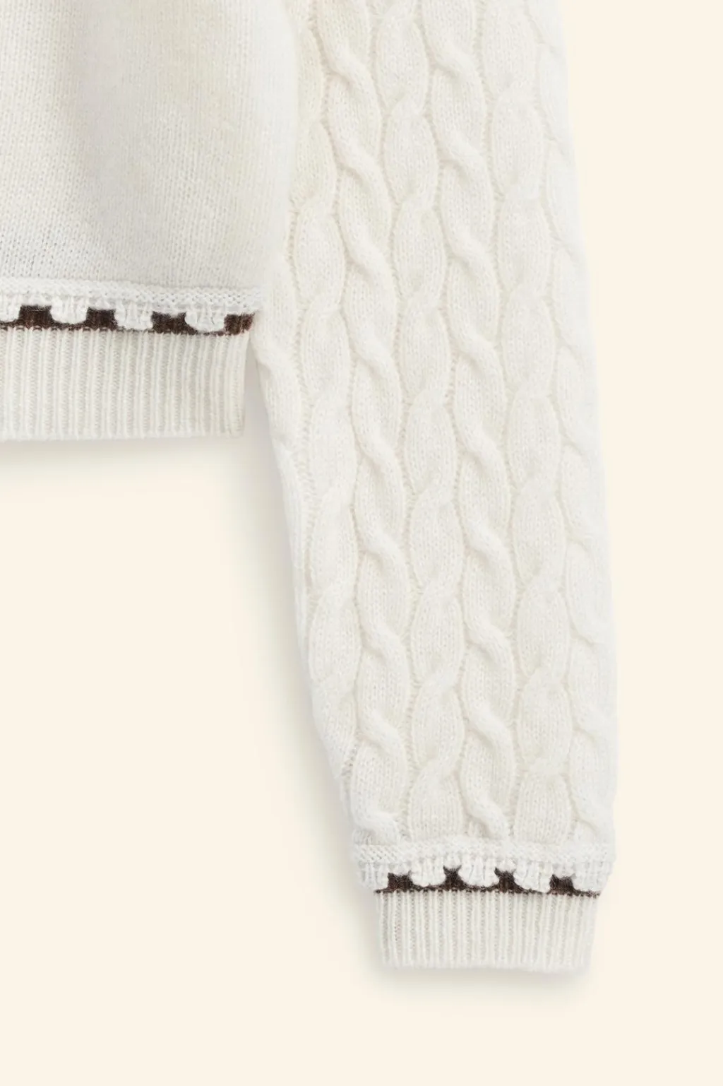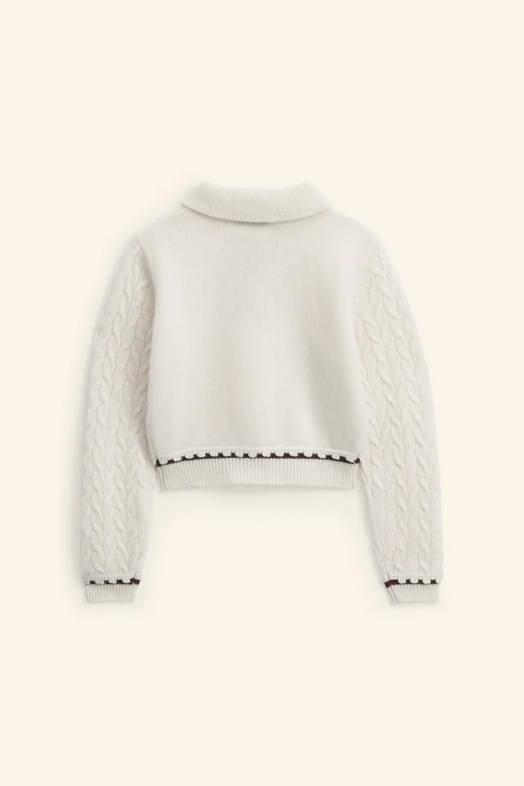 Polo de punto con cuello tipo polo y manga larga en punto ocho. Aplique puntilla en botonadura de la pechera. Acabados con vivos a contraste. Tejido con un 90% de lana y 10% de cashmere.