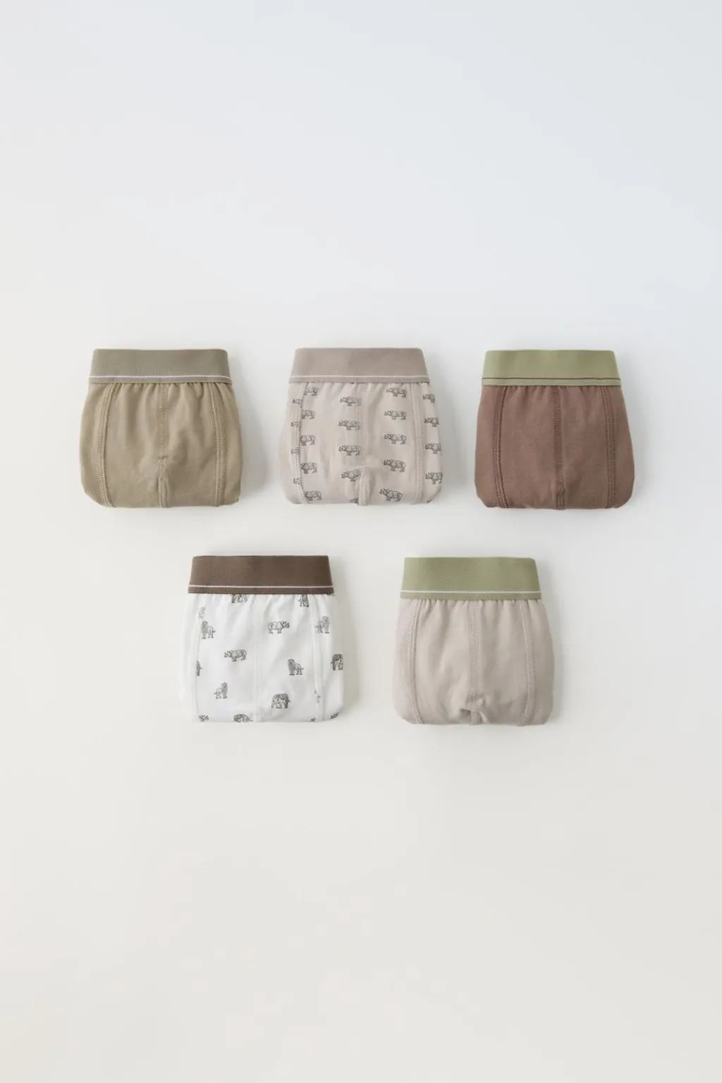 Pack de cinco bóxers con cinturilla elástica con motivos estampados y lisos.