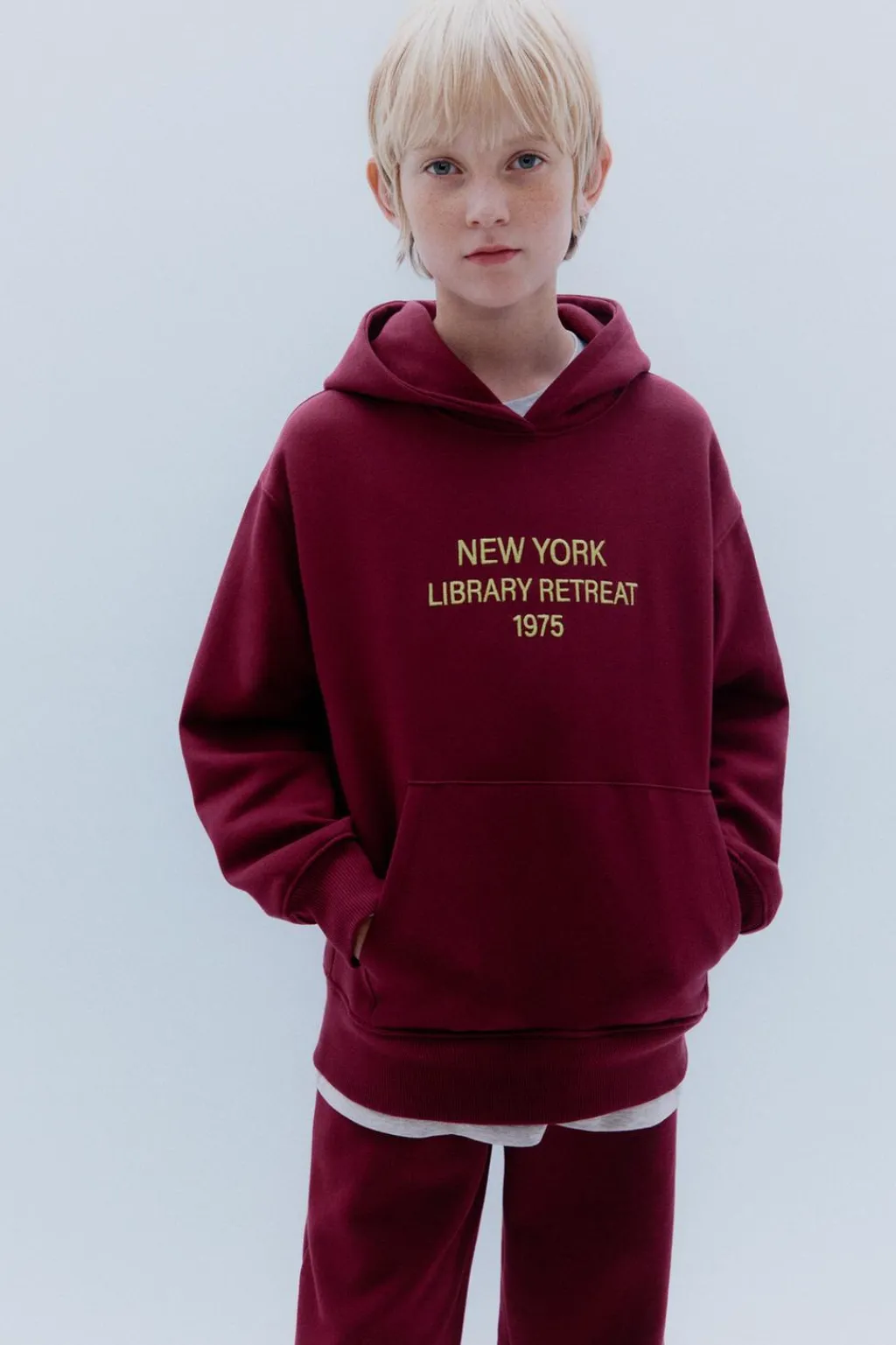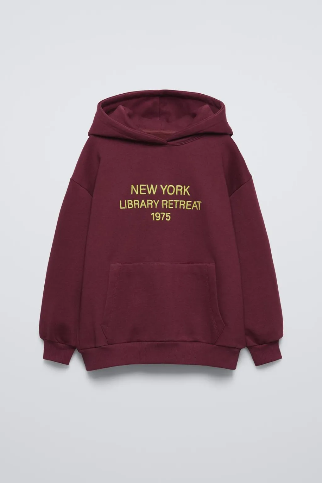 Sudadera con capucha y manga larga. Acabados en rib. Bolsillo tipo canguro y estampado texto bordado en delantero. Aplique etiqueta en capucha. Tejido interior en una calidad cálida y suave.
