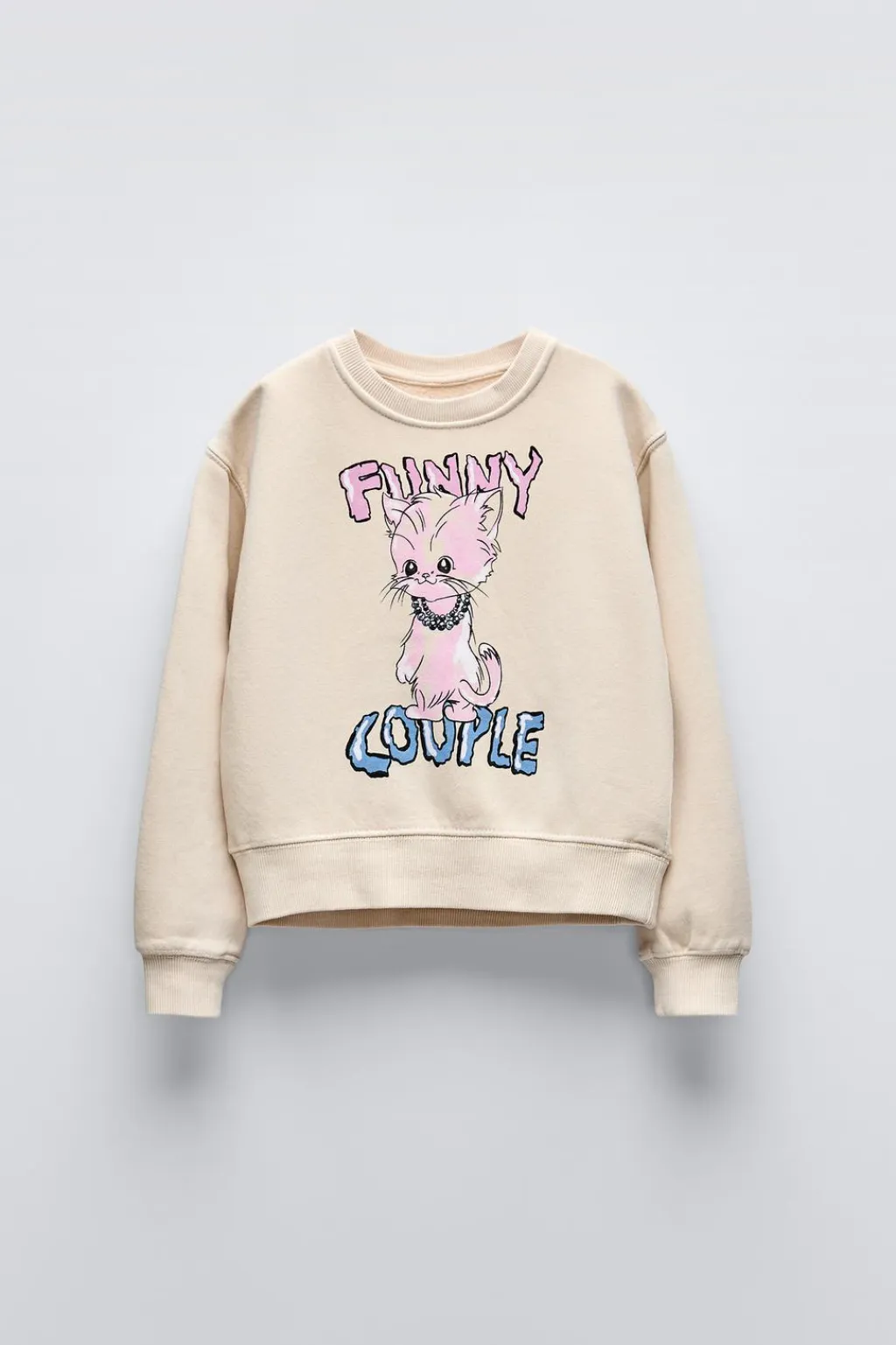 Sudadera con cuello redondo y manga larga. Estampado motivo gato en delantero. Acabados en rib.