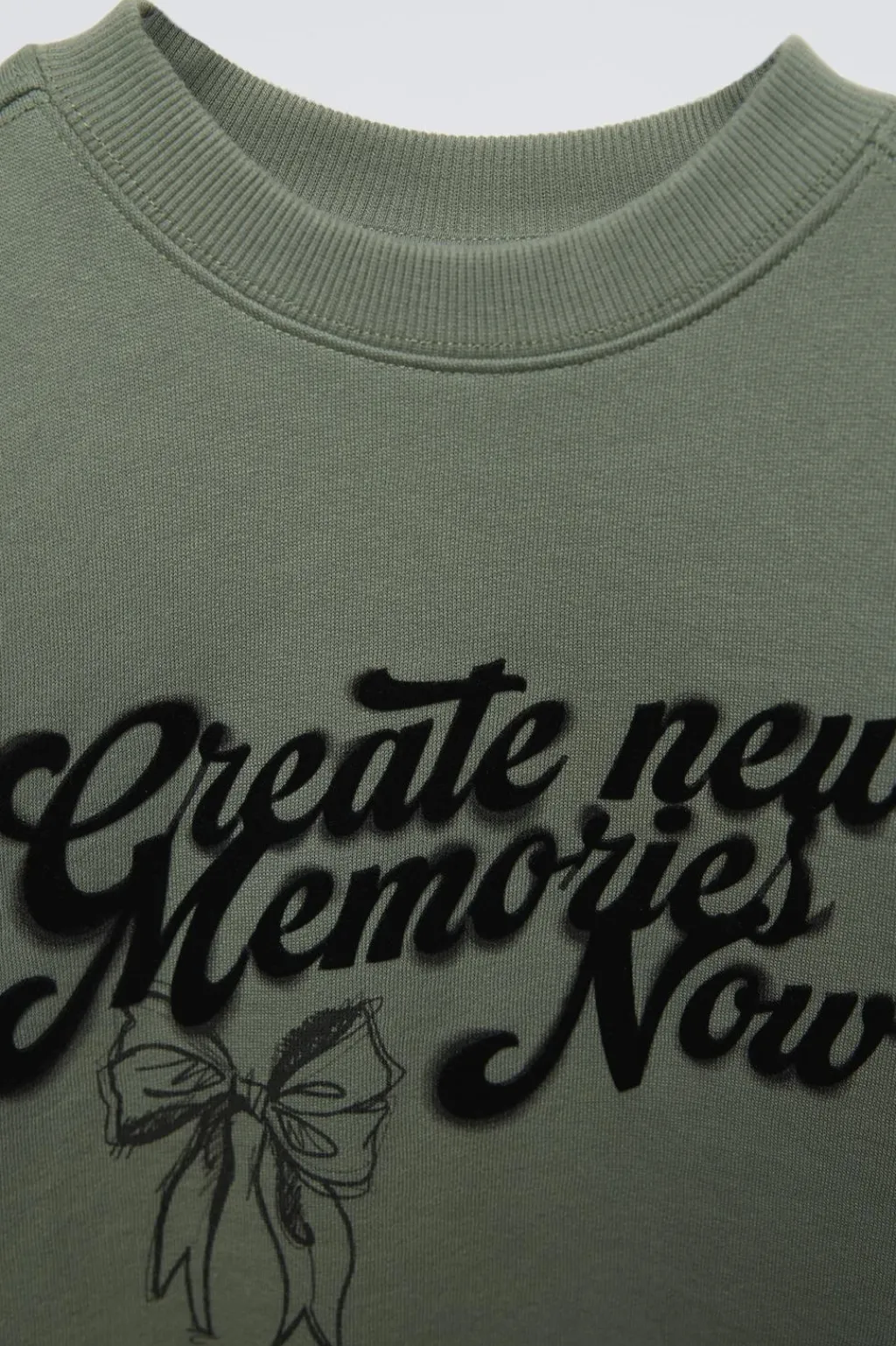 Camiseta con cuello redondo y manga larga. Acabados en rib. Estampado texto con detalle flock en delantero y en espalda.