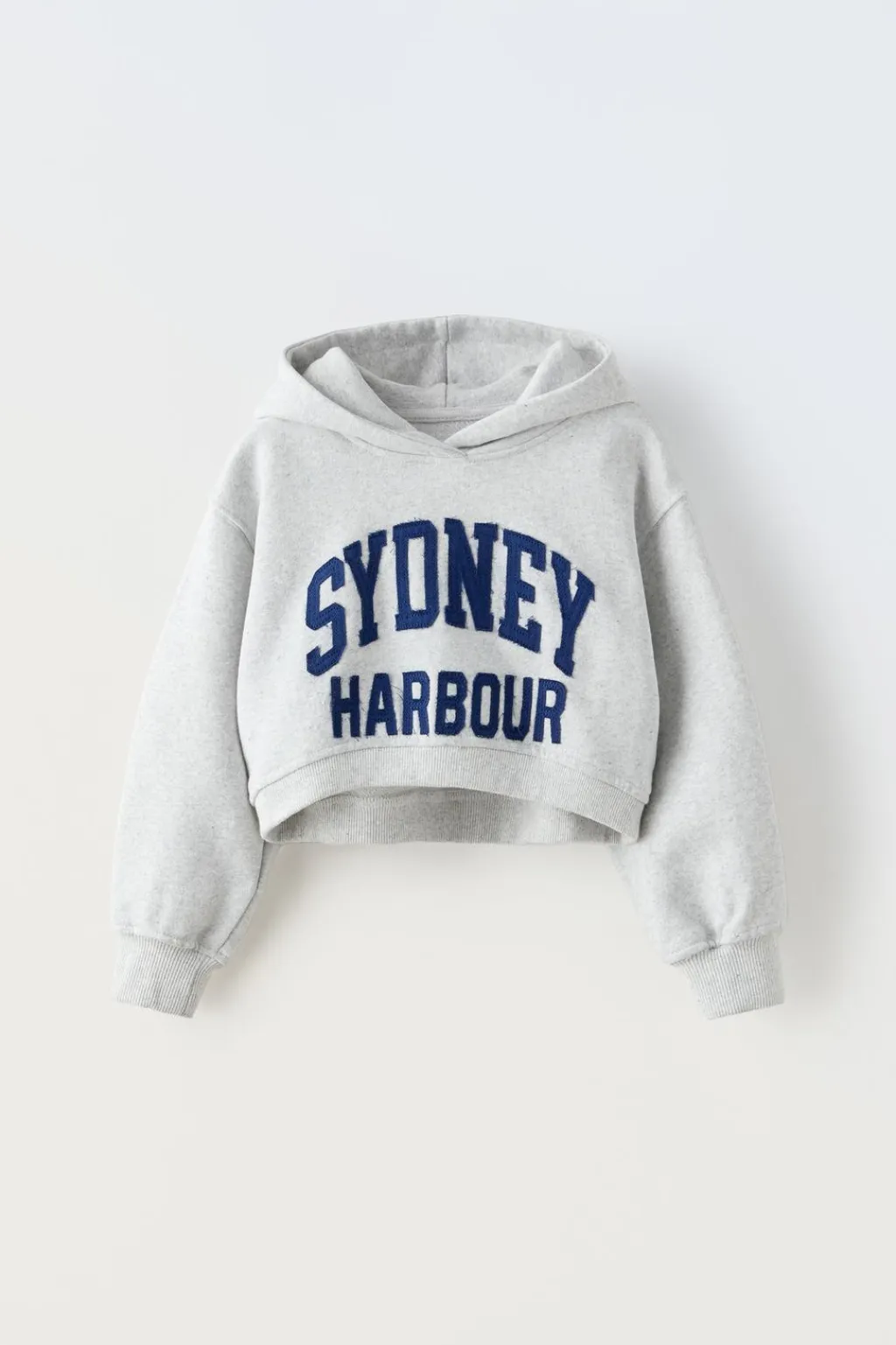 Sudadera tipo crop con capucha y manga larga. Acabados en rib. Detalle texto en delantero.