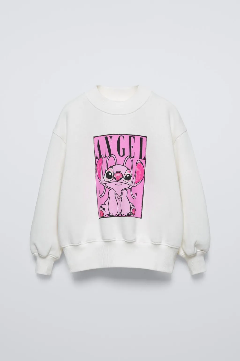 Sudadera con cuello redondo y manga larga. Acabados en rib. Estampado STITCH & ANGEL © DISNEY en delantero. Interior en una calidad cálida y suave.