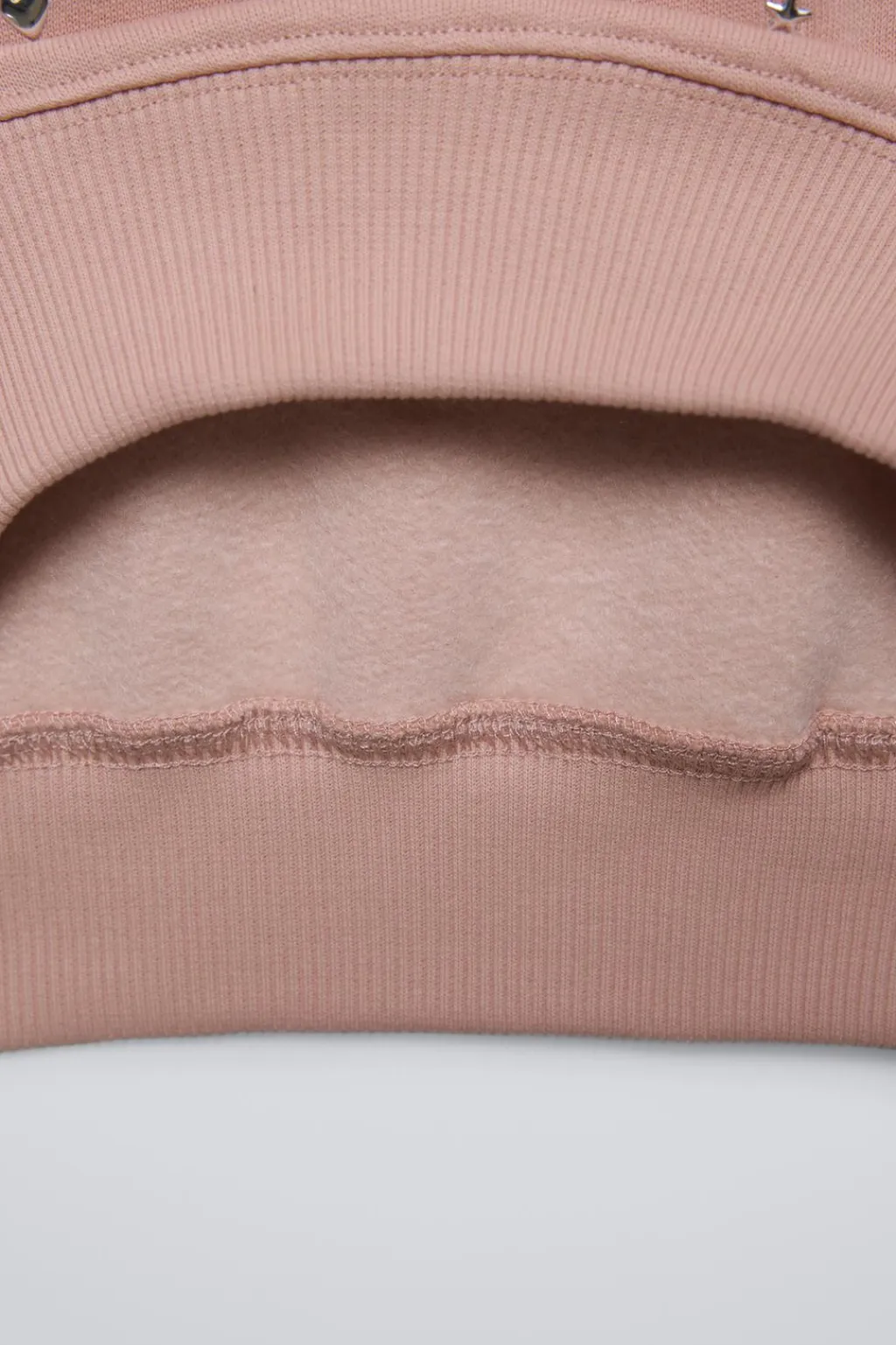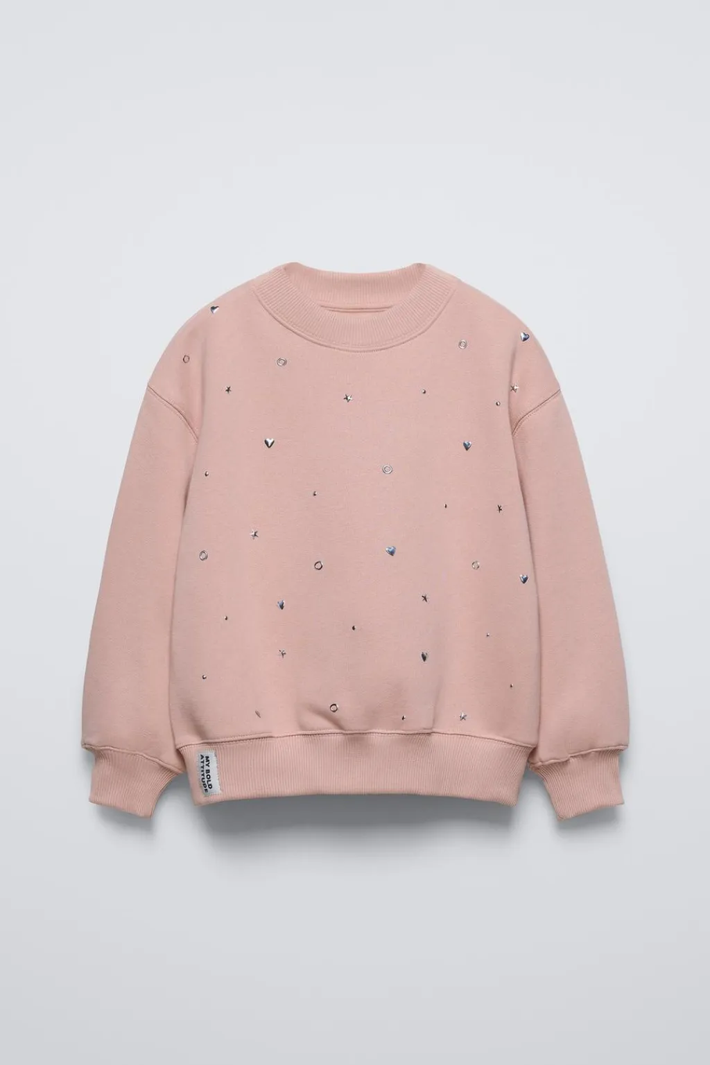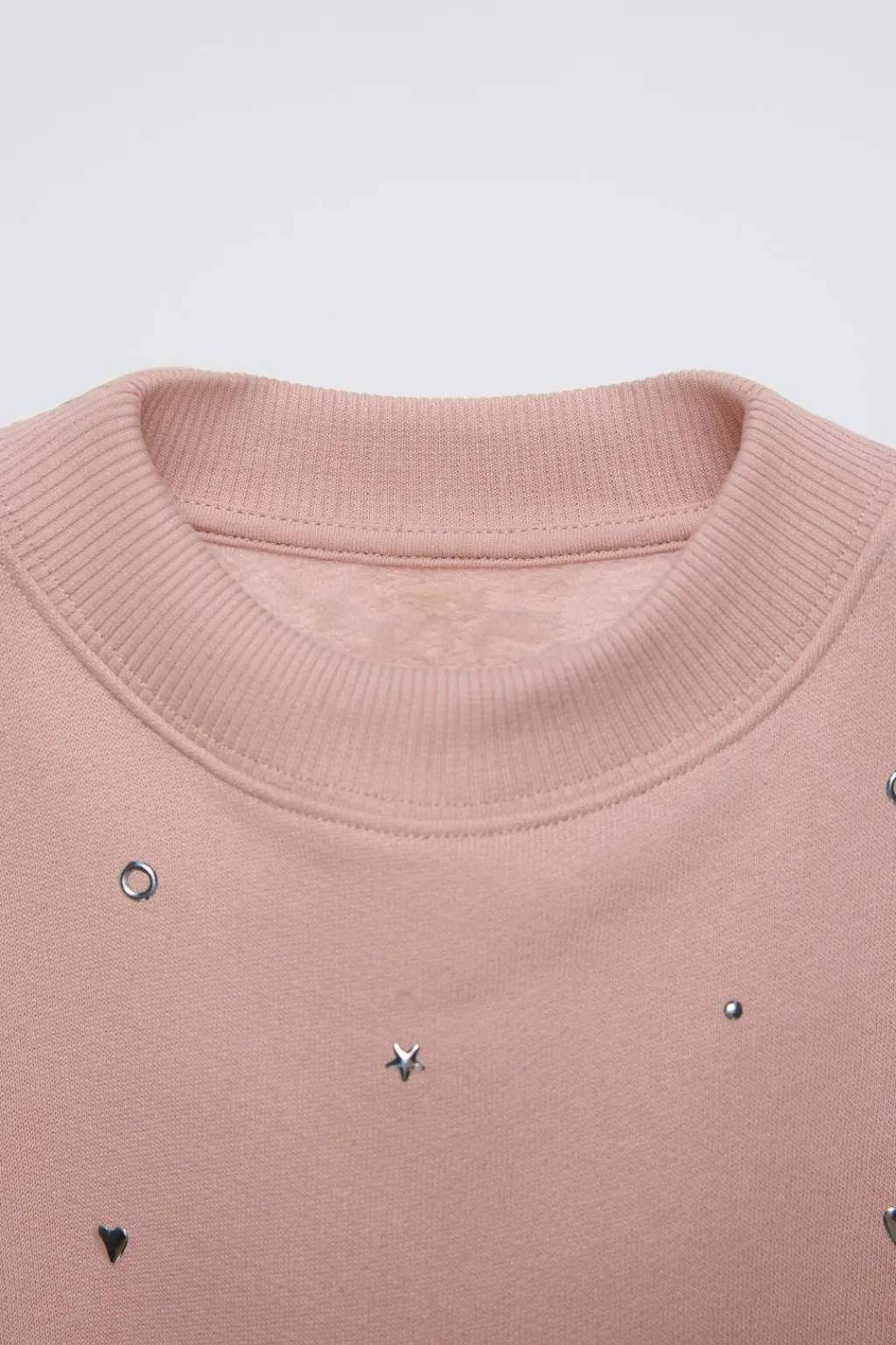 Sudadera con cuello redondo y manga larga. Acabados en rib. Detalle tachas en delantero y aplique etiqueta en bajo. Tejido interior en una calidad cálida y suave.