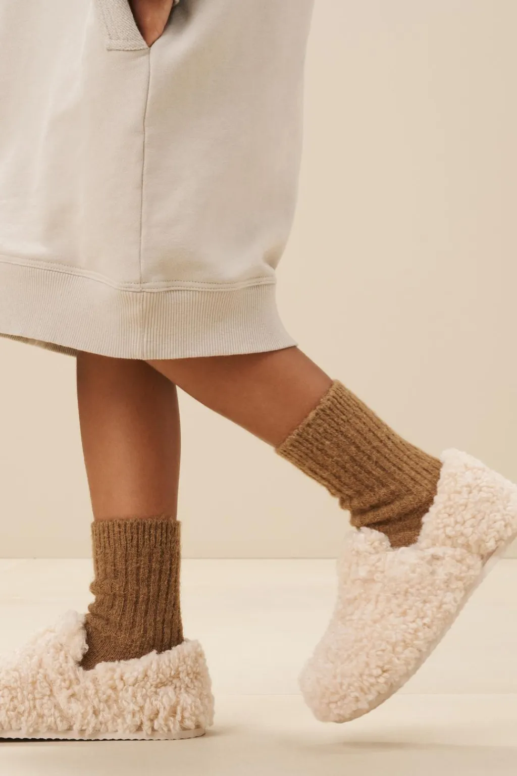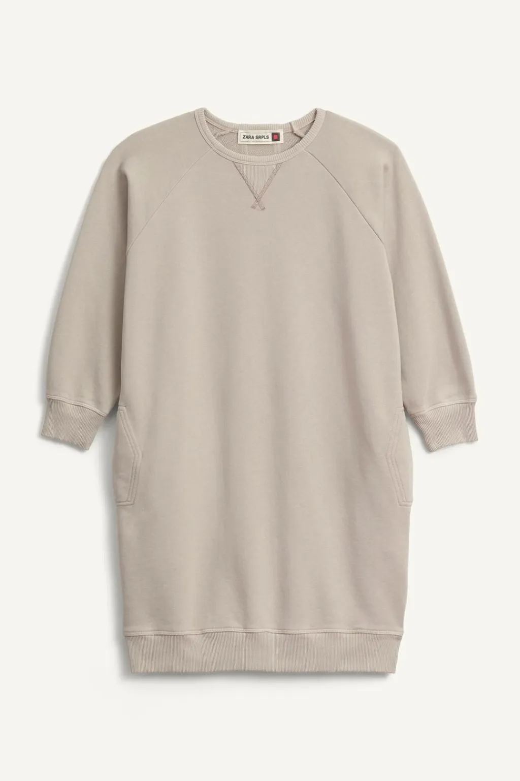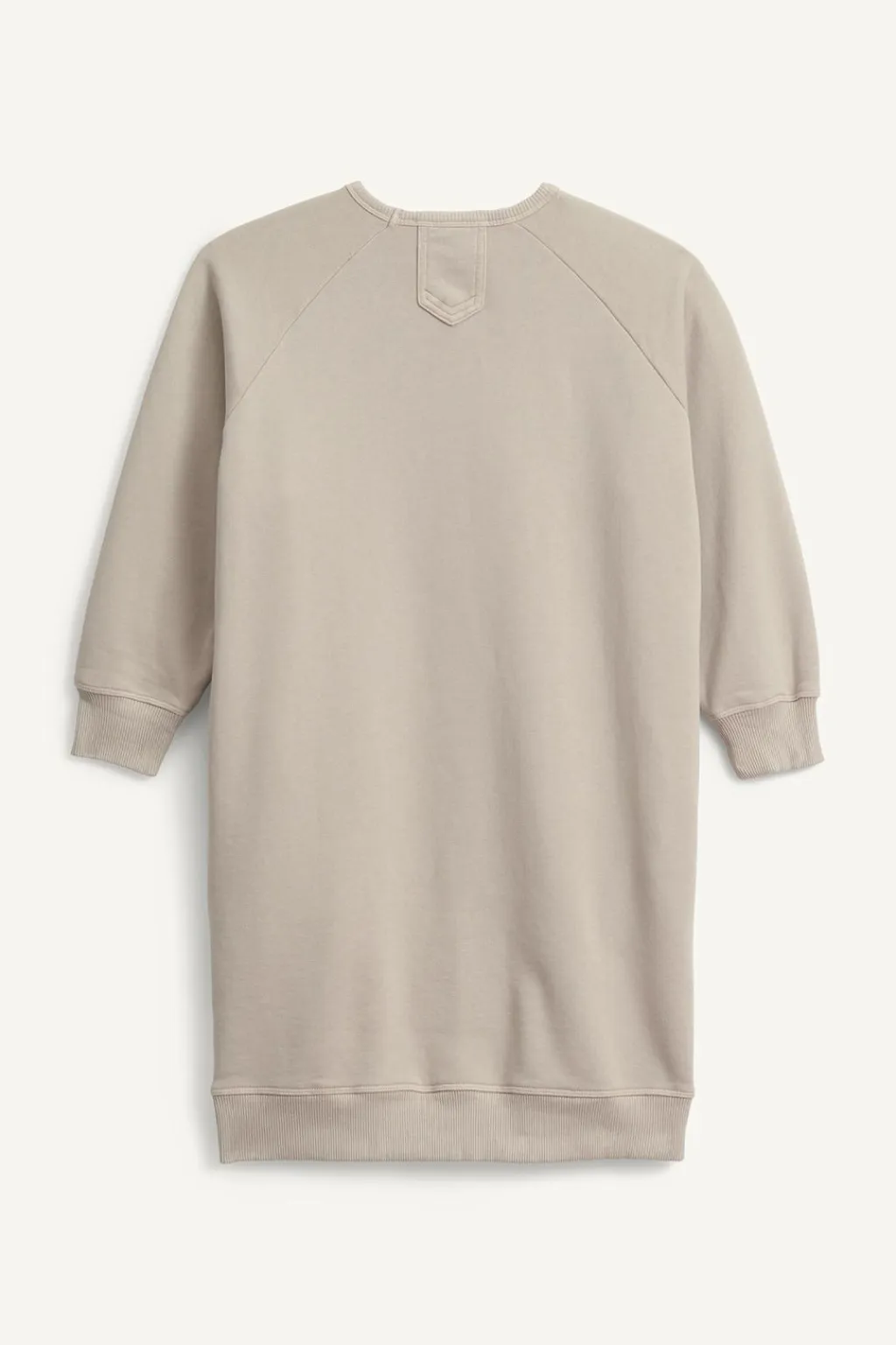 Vestido de felpa con cuello redondo y manga larga acabada en puño. Bolsillos delanteros con detalle tapeta combinada. Bajo acabado en rib y en cuello.
