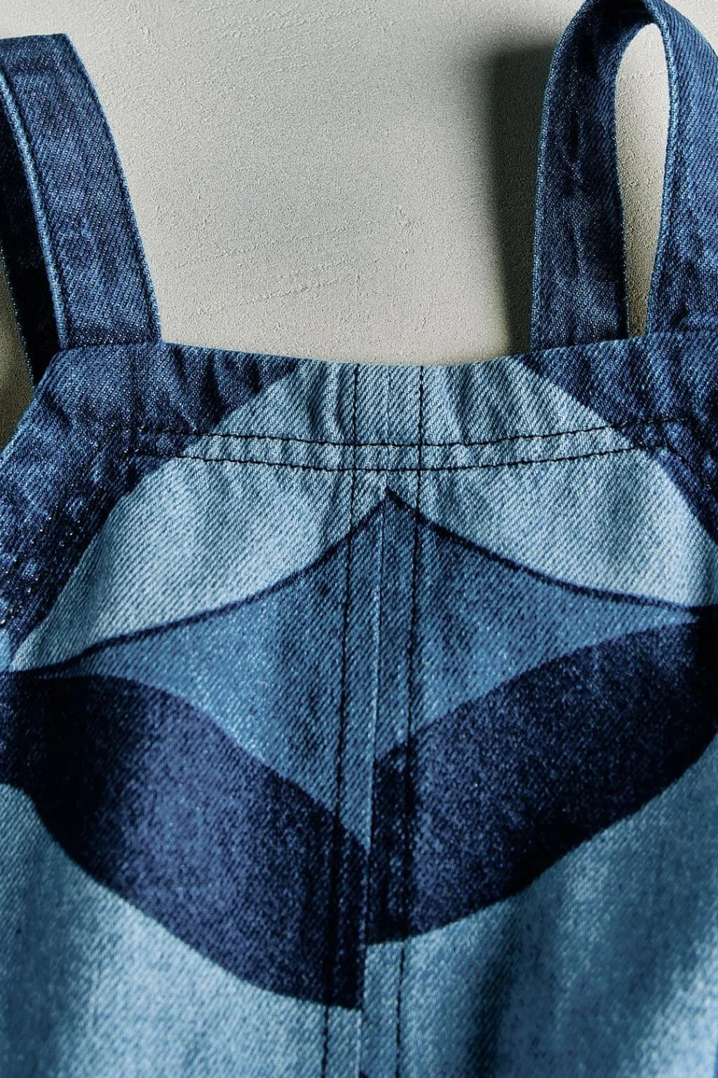 Vestido confeccionado en tejido denim con estampado geométrico.