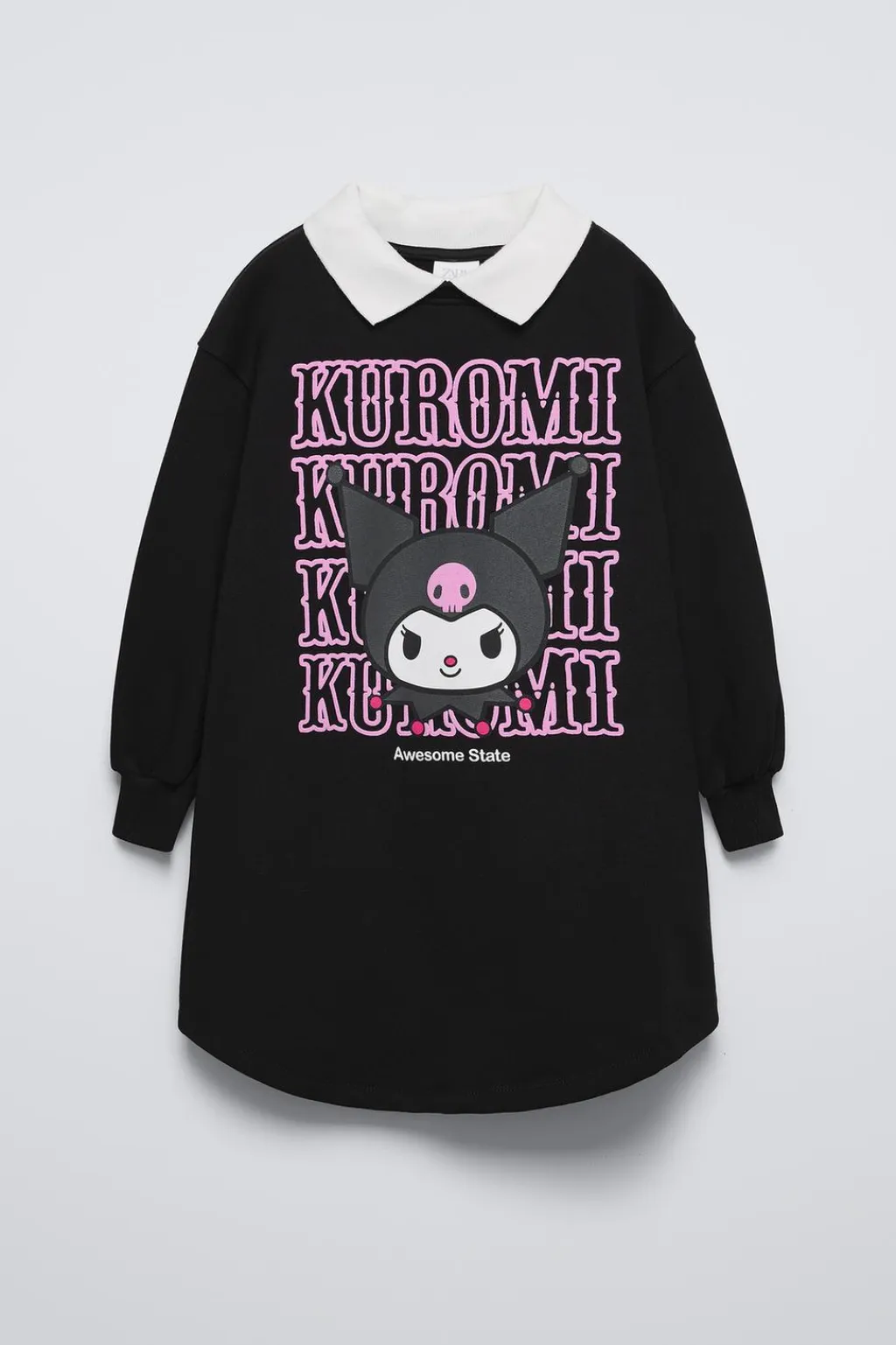 Vestido con cuello camisero y manga larga acabada en puño. Estampado KUROMI © SANRIO con relieve en delantero. Calidad interior cálida y suave.