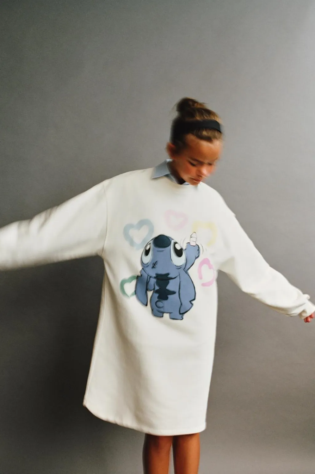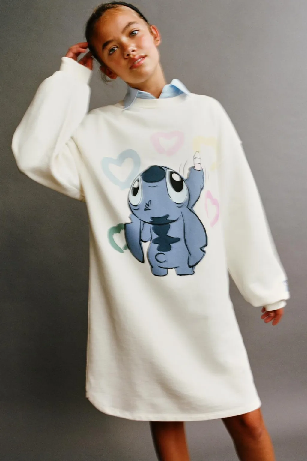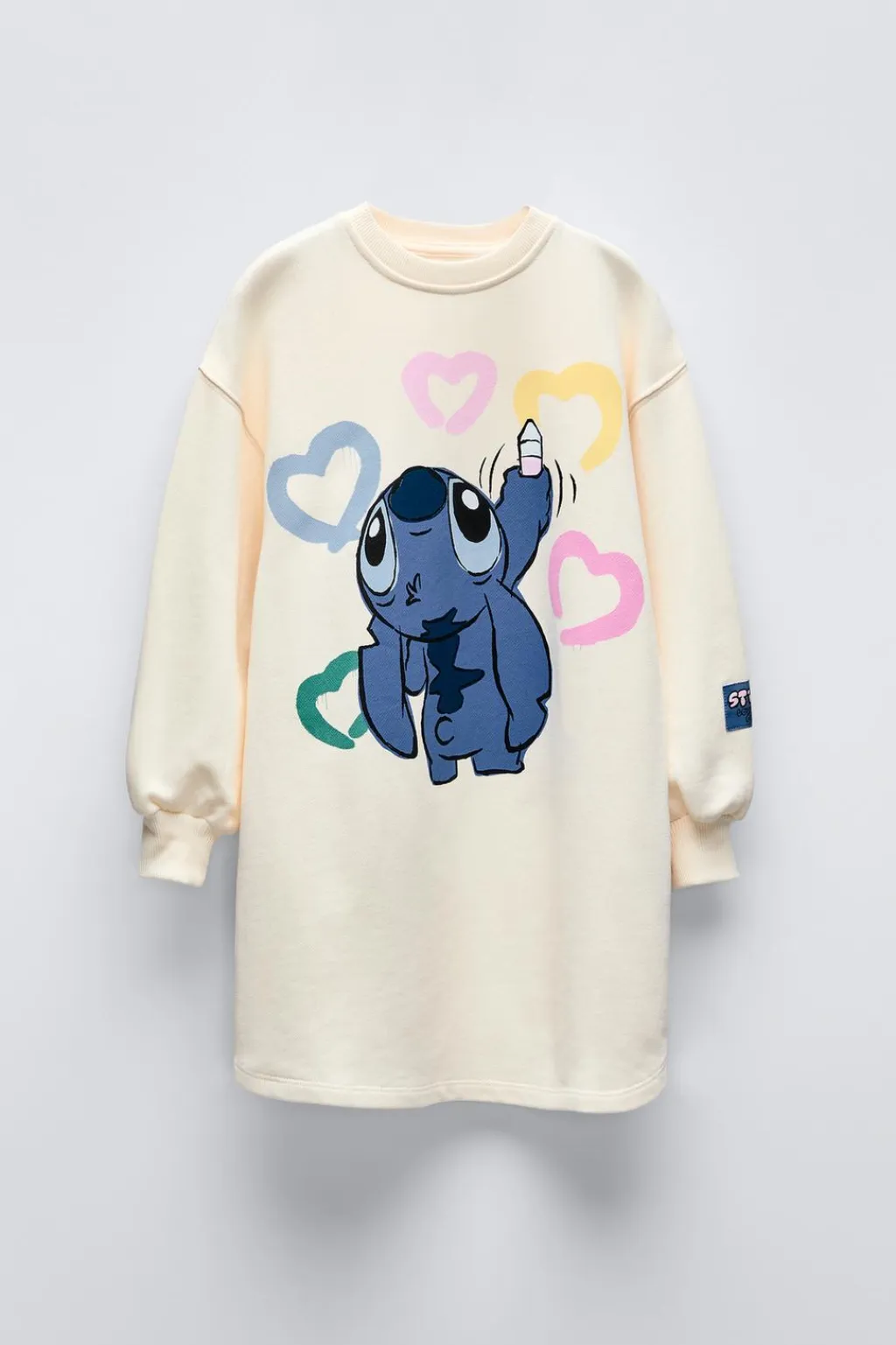 Vestido con cuello redondo y manga larga acabada en puño. Estampado LILO & STITCH © DISNEY en delantero y aplique etiqueta en manga.