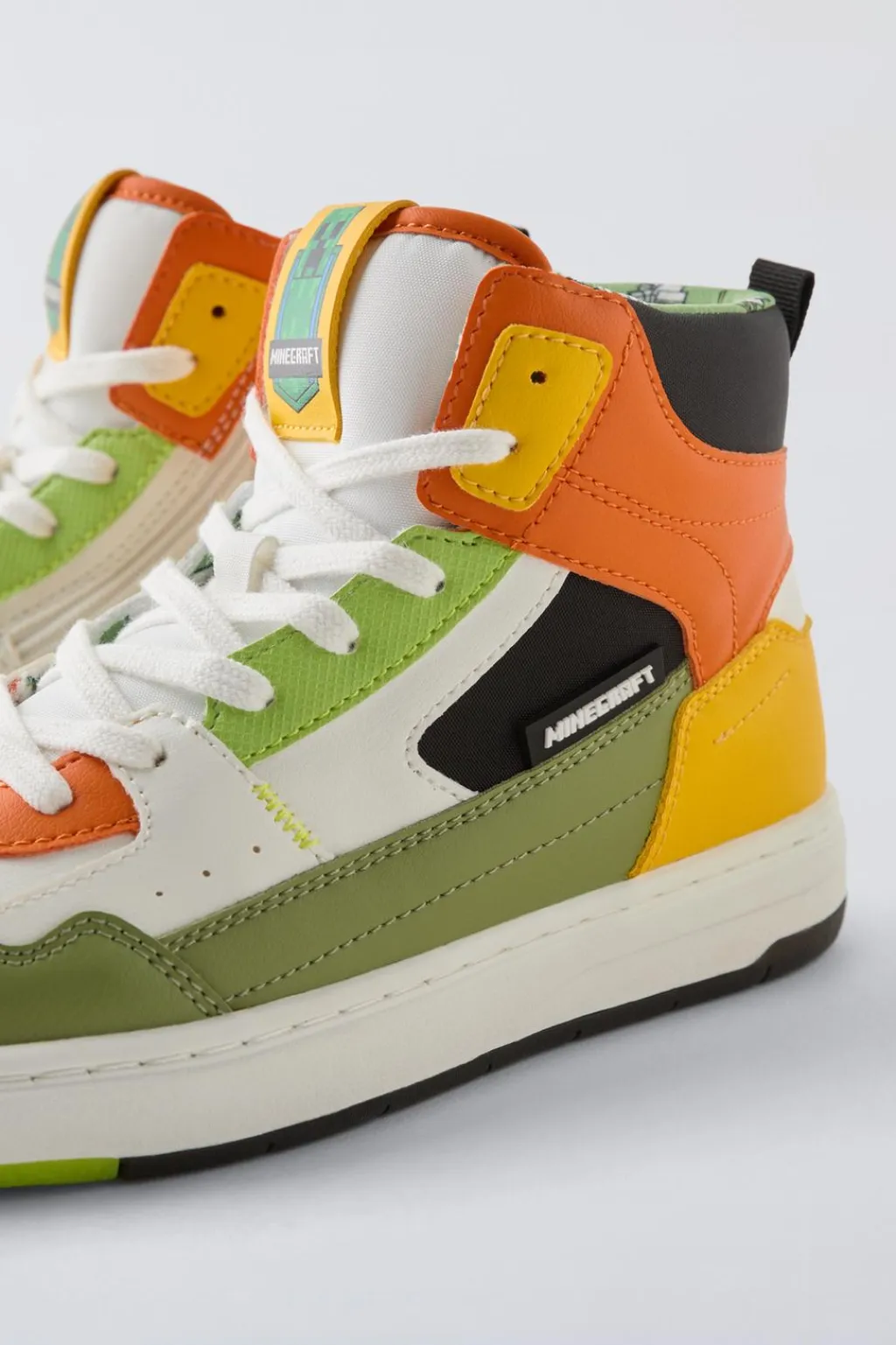 Zapatilla tipo botín deportivo multicolor MINECRAFT © MOJANG AB. ™. Cierre mediante cordones ajustables y cremallera lateral. Tirador trasero para facilitar el calce. Plantilla flexible. Suela de goma en contraste de color.