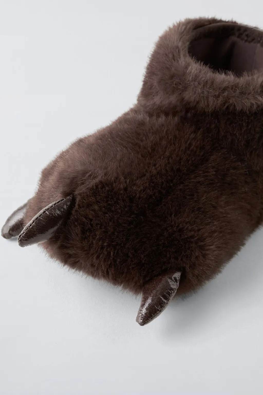 Zapatillas de casa en forma de garra acabado en pelo. Suela de goma.