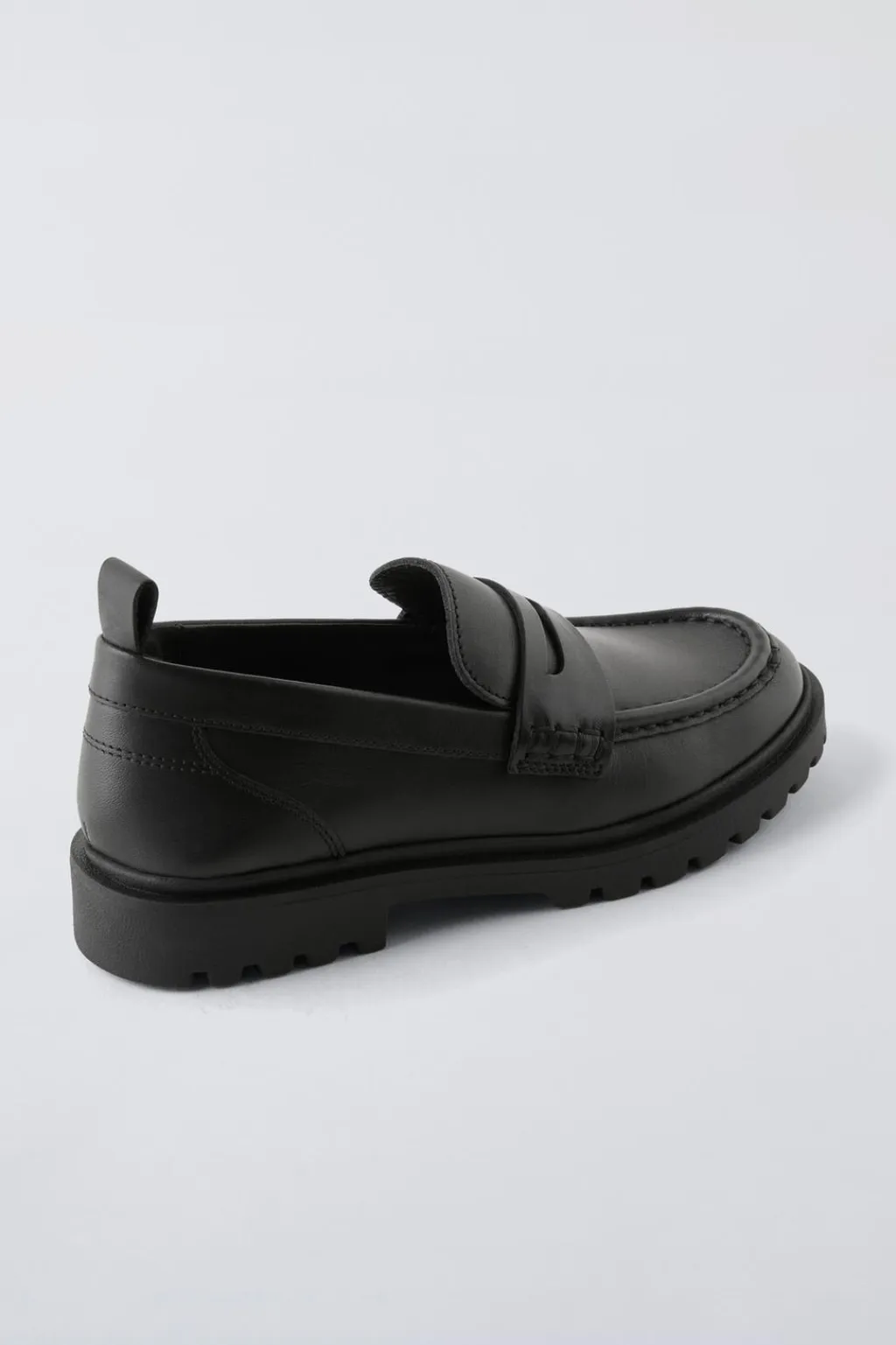 Zapato colegial tipo mocasín 100% piel vacuno. Detalle antifaz en el empeine y ribeteado en el corte. Plantilla flexible 100% piel caprina. Tirador trasero para facilitar el calce. Suela de goma.