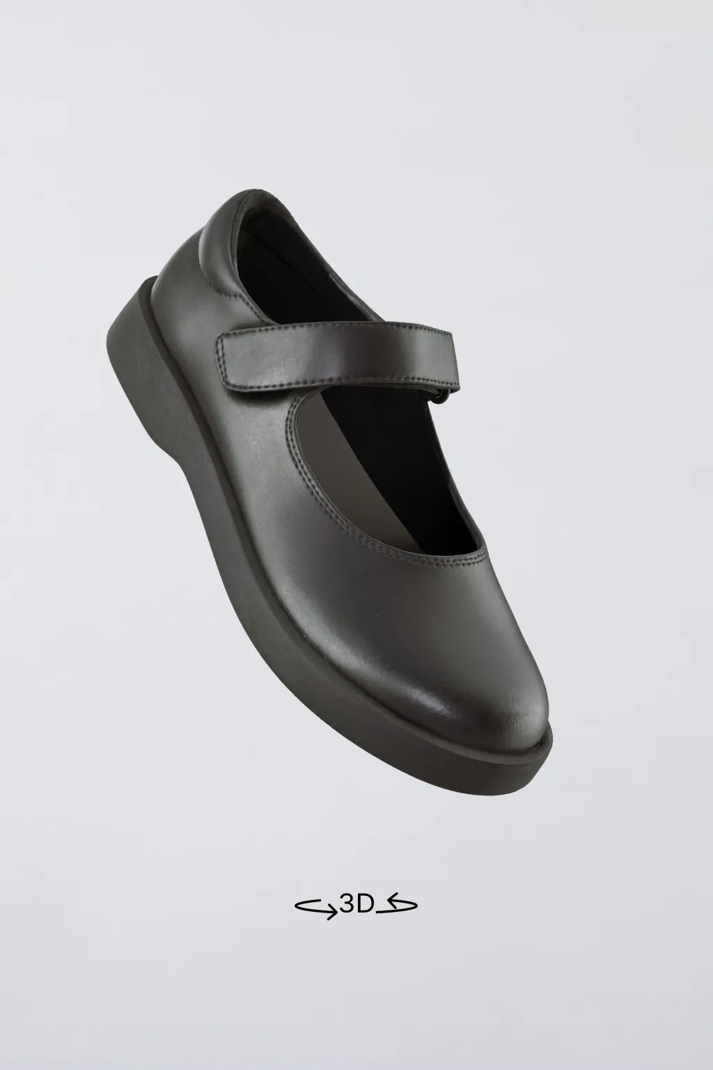 Zapato tipo bailarina colegial 100% piel vacuno. Cierre mediante tira adhesiva. Plantilla flexible y forro interior 100% piel ovina. Suela de goma.