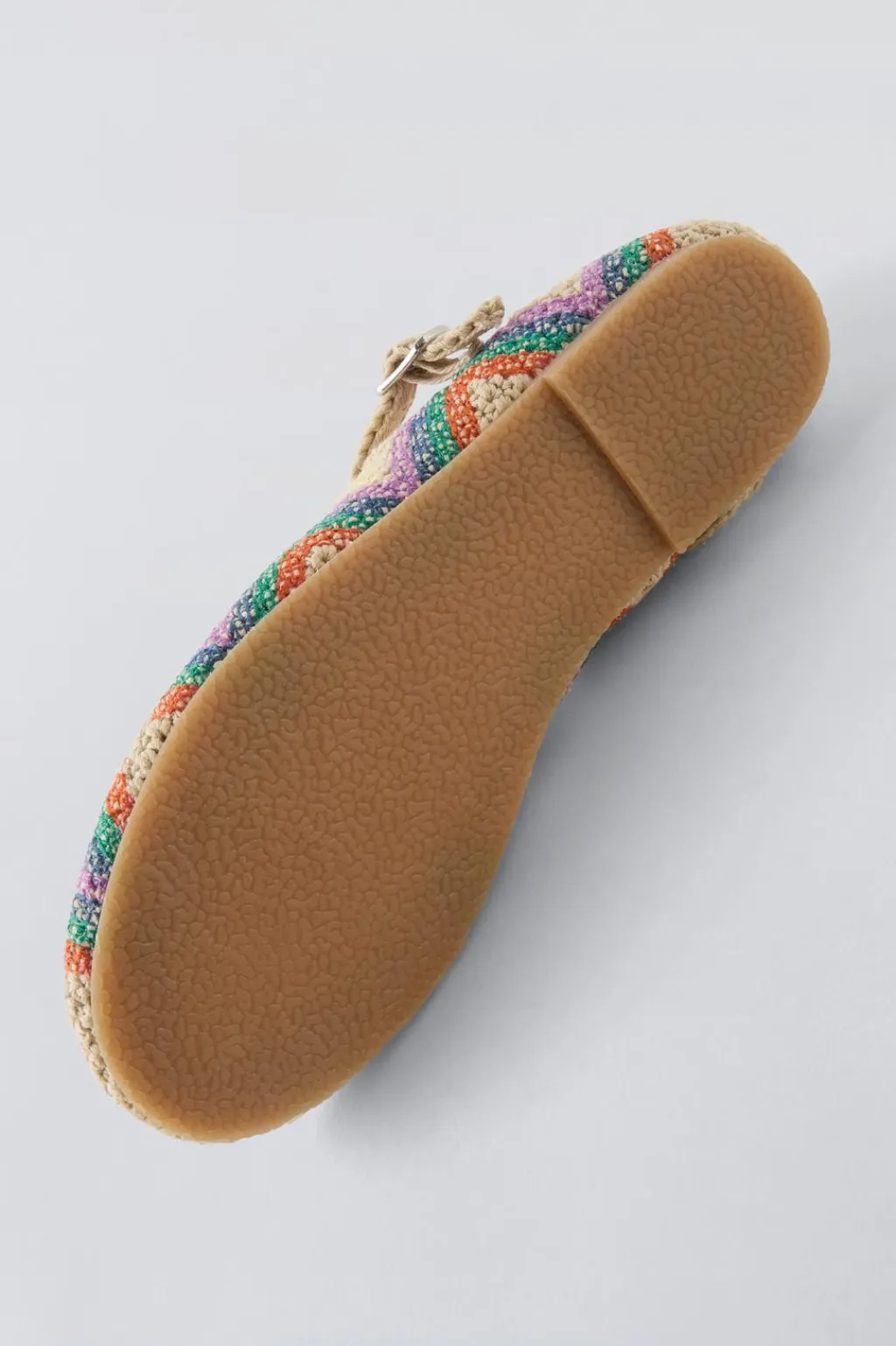 Zapato tipo bailarina crochet. Cierre mediante hebilla lateral. Plantillaflexible100% algodón. Suela de goma.