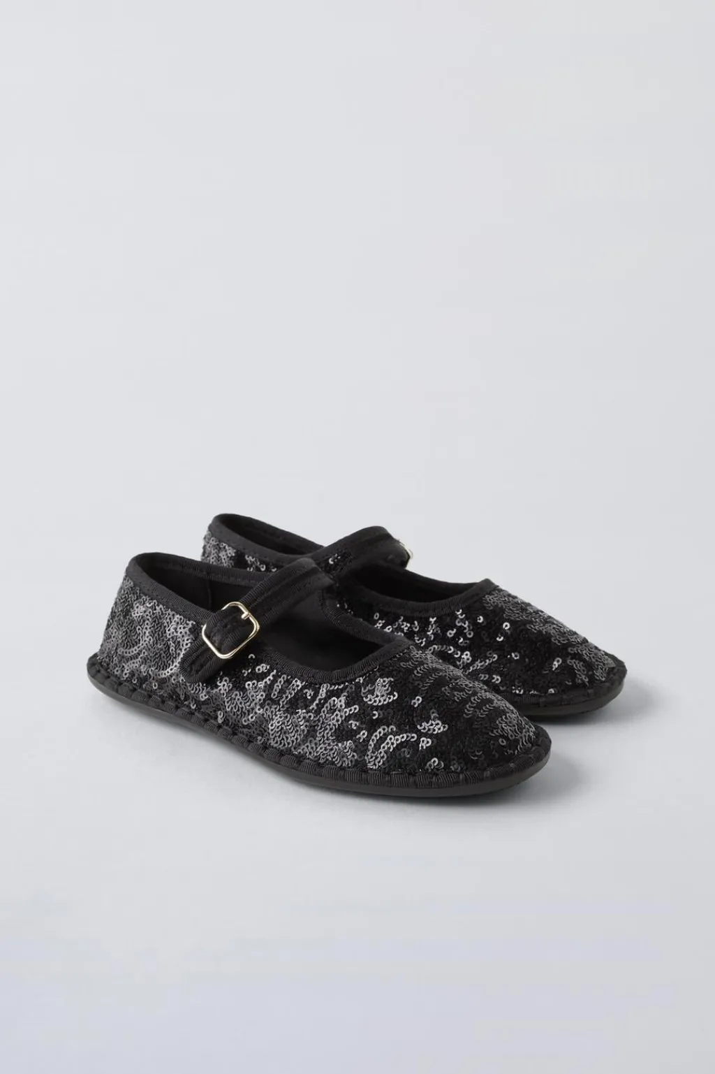 Zapato tipo bailarina con detalle de lentejuelas. Cierre mediante hebilla lateral. Plantilla flexible. Suela de goma en contraste de color.