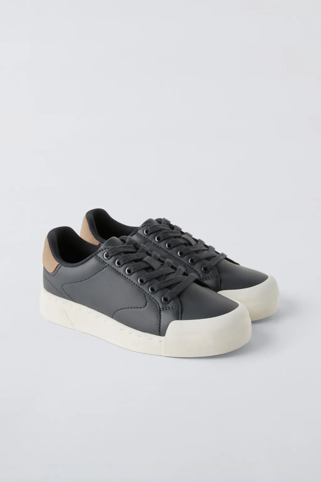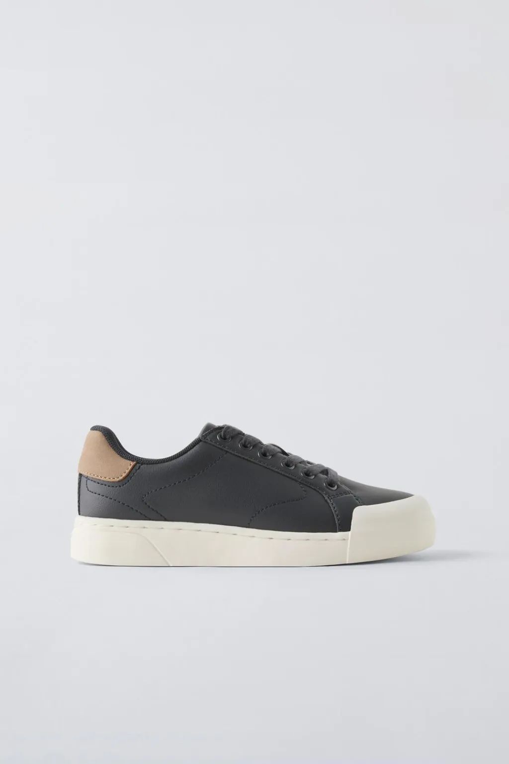 Zapatilla tipo bamba básica con detalle en la parte posterior en contraste de color. Cierre mediante cordones ajustables. Puntera de goma reforzada. Suela de goma en contraste de color.
