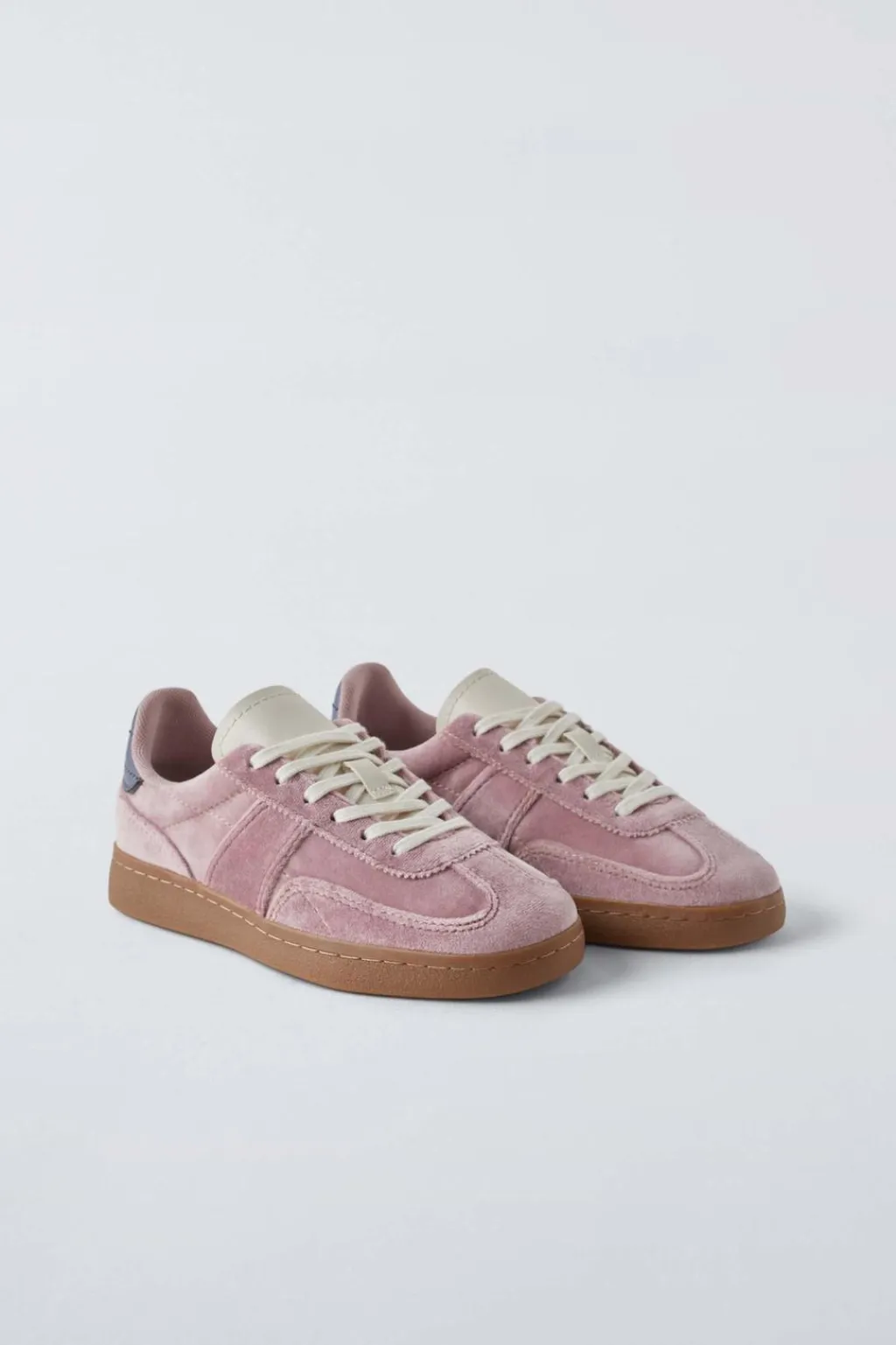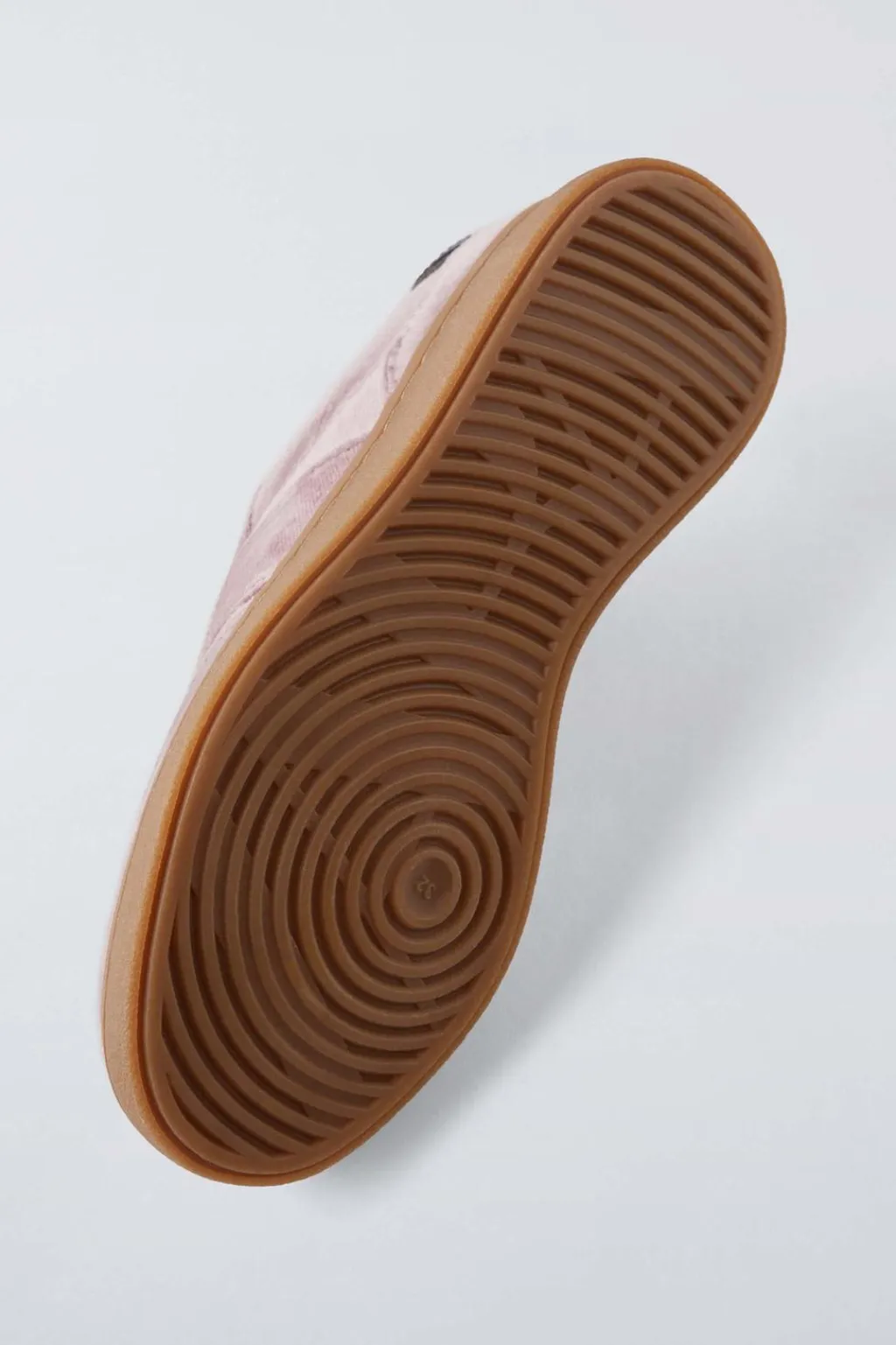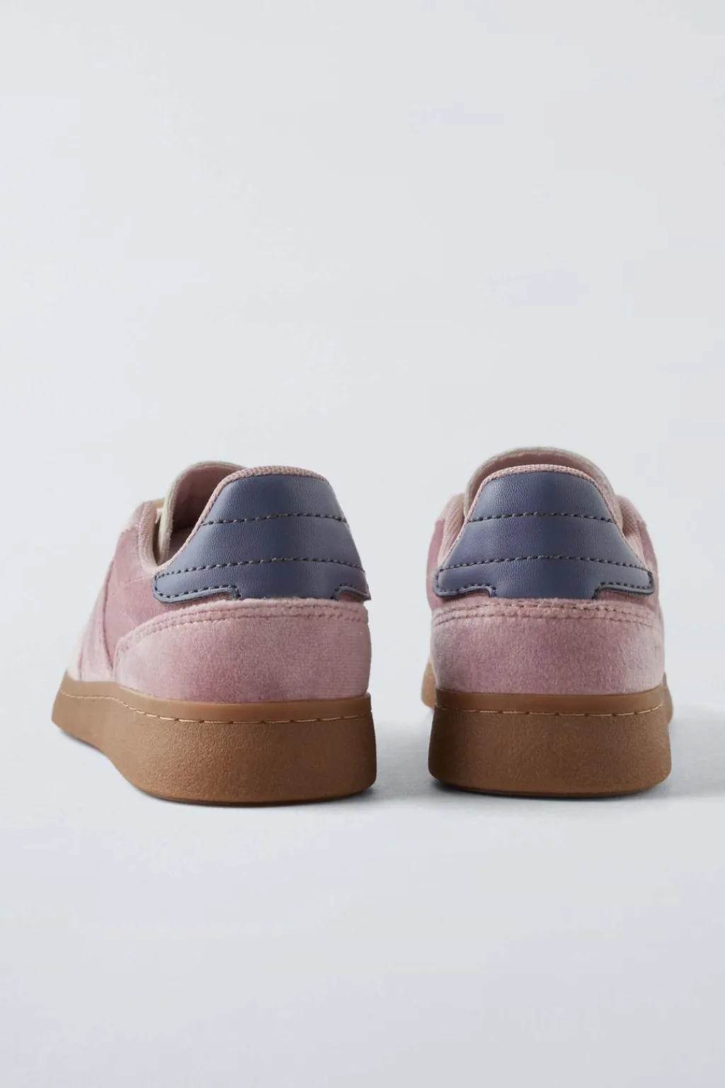 Zapatilla tipo bamba acabado en velvet. Cierre mediante cordones ajustables. Plantilla flexible. Suela de goma en contraste de color.