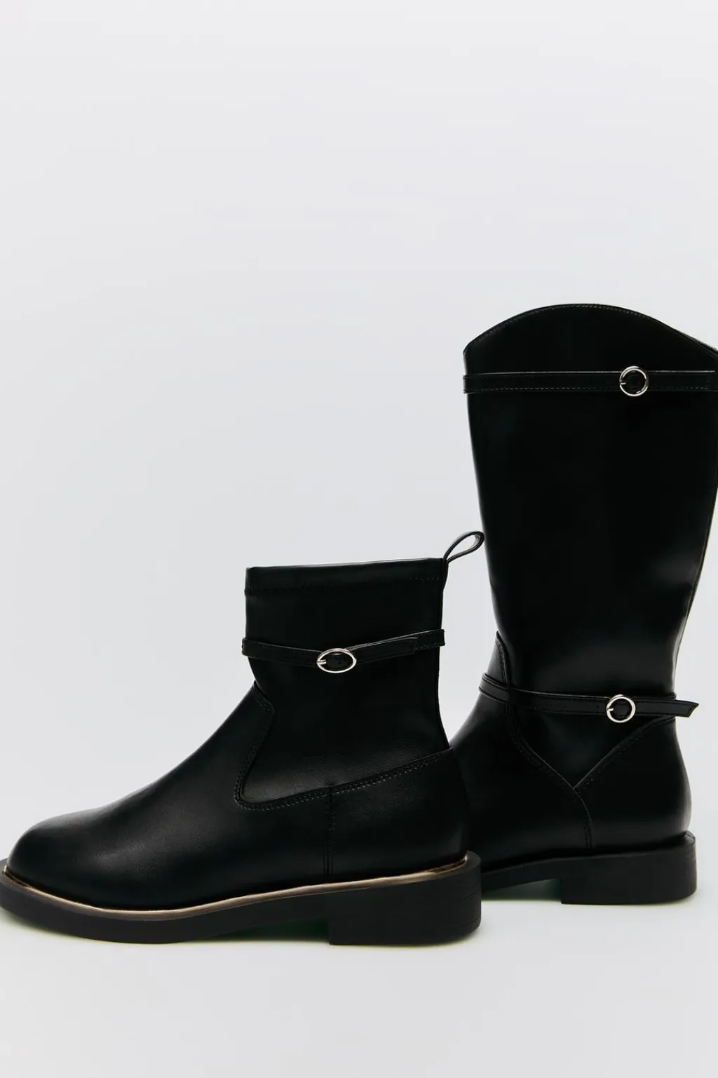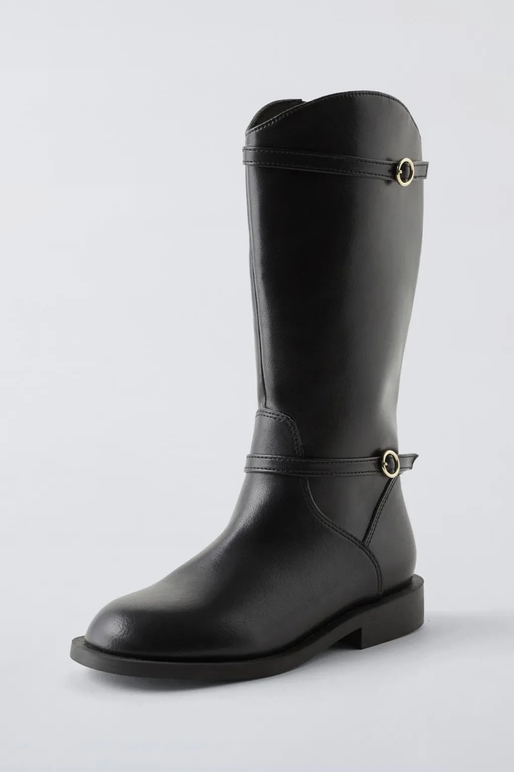 Bota alta soft con detalle hebillas. Cierre mediante cremallera lateral. Suela de goma.