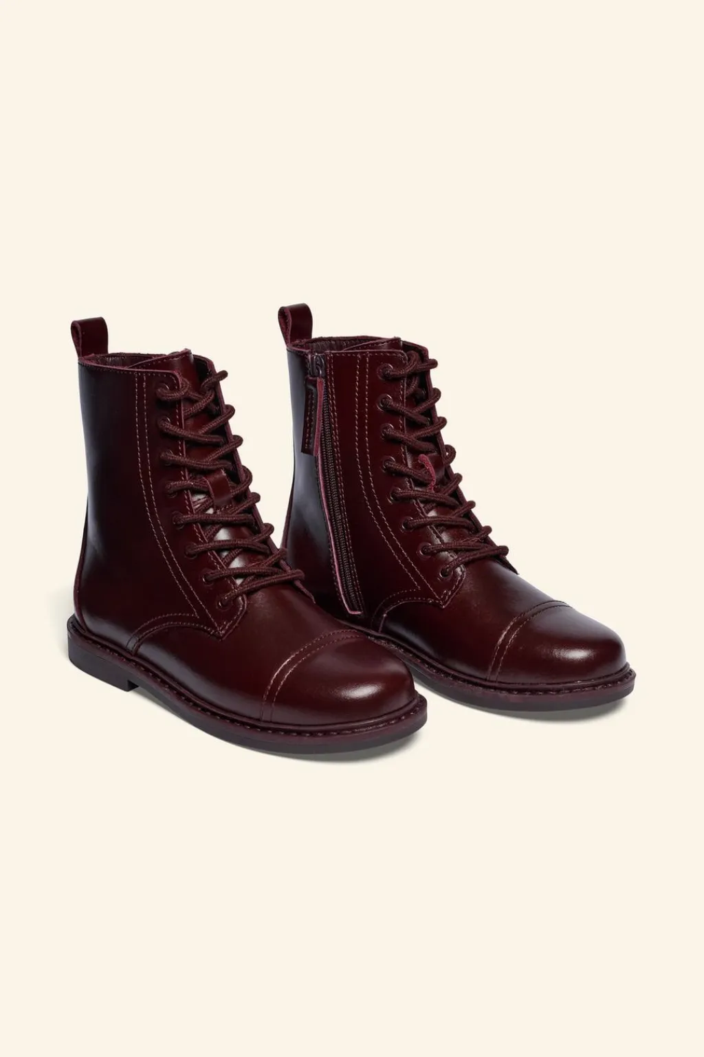 Botín de piel 100% vacuno. Cierre mediante cremallera y cordones ajustables. Tirador trasero para facilitar el calce. Plantilla flexible 100% piel ovina. Suela de goma.