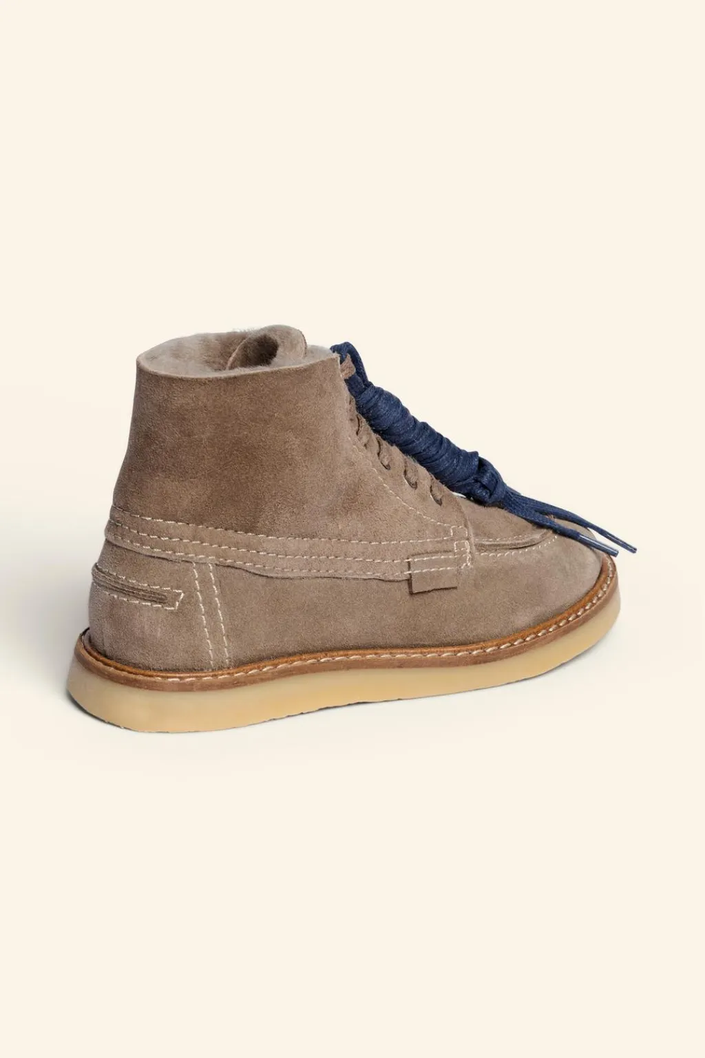 Botín en combinación de piel vacuno y ovina. Cierre mediante cordones ajustables. Cuenta con cordones intercambiables. Forro interior en combinación de piel de cordero y algodón. Plantillaflexible 100% piel ovina. Suela de goma en contraste de color.
