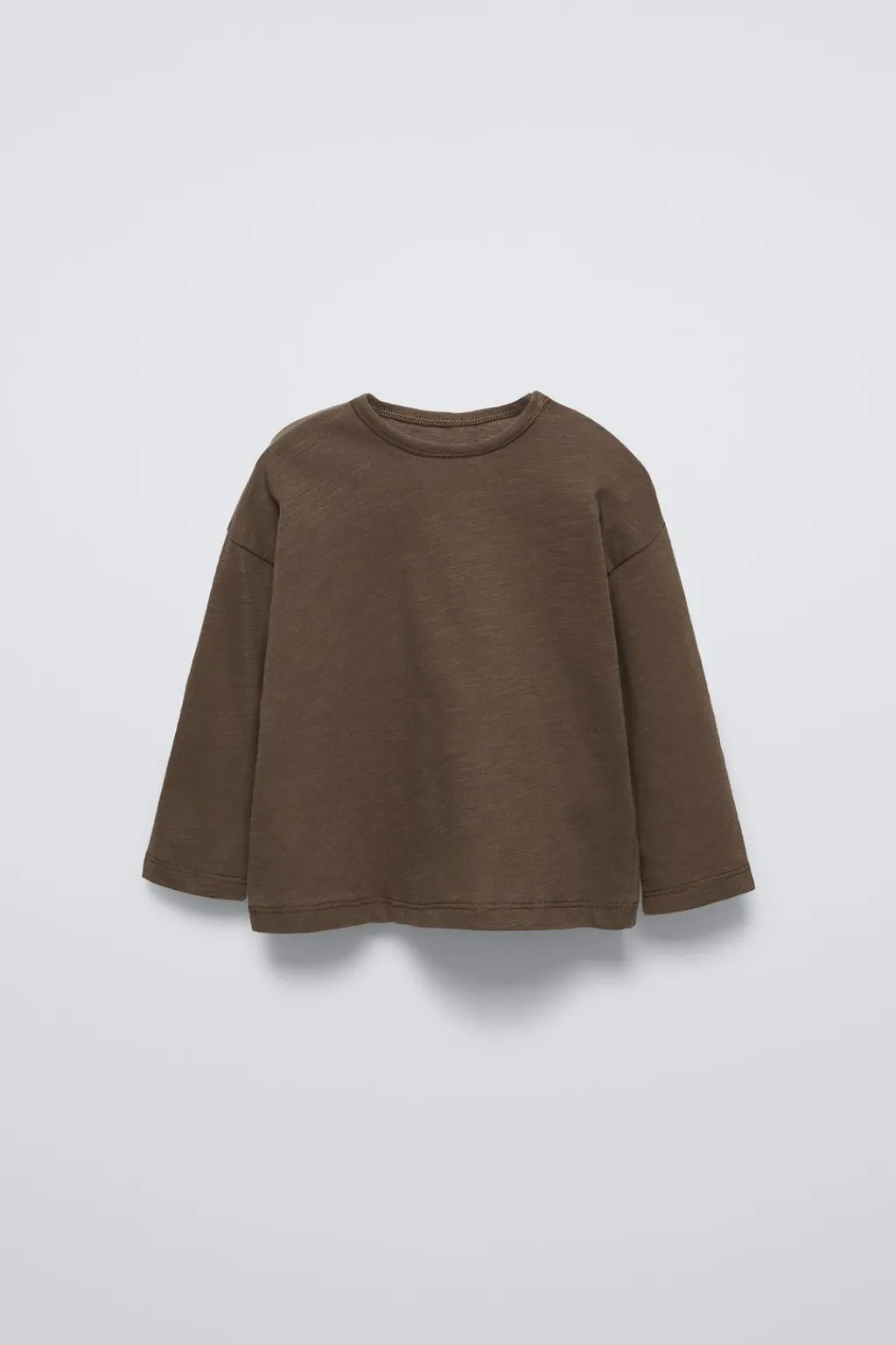 Camiseta con cuello redondo y manga larga. Cierre con botones tipo presión en hombro.