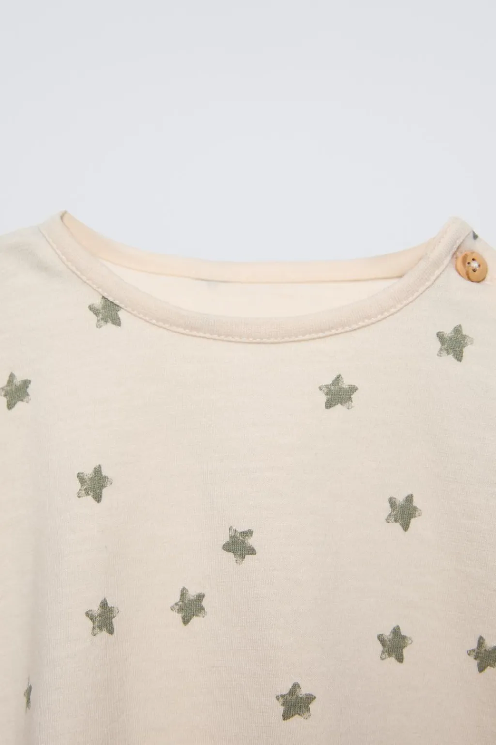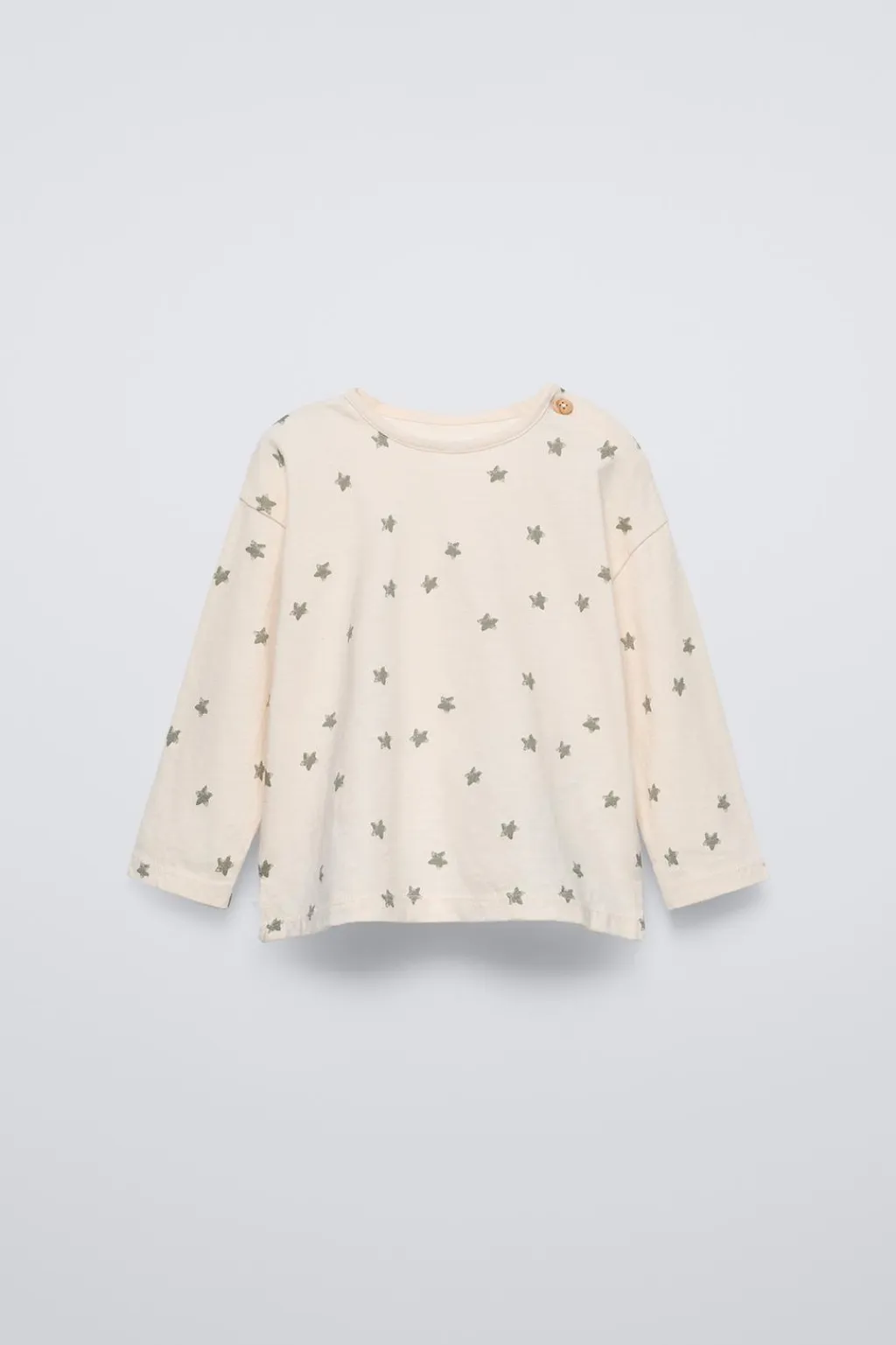 Camiseta con cuello redondo y manga larga. Cierre botón en hombro.