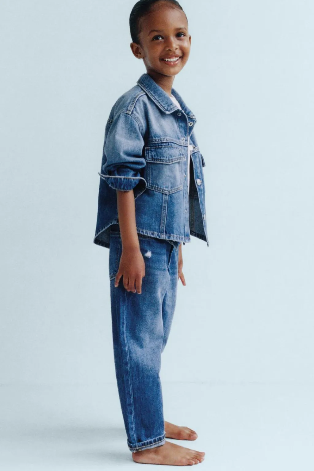 Jeans con cinturilla elástica y cierre botón frontal. Bolsillos delanteros y de tipo plastrón en espalda. Detalle rotos.