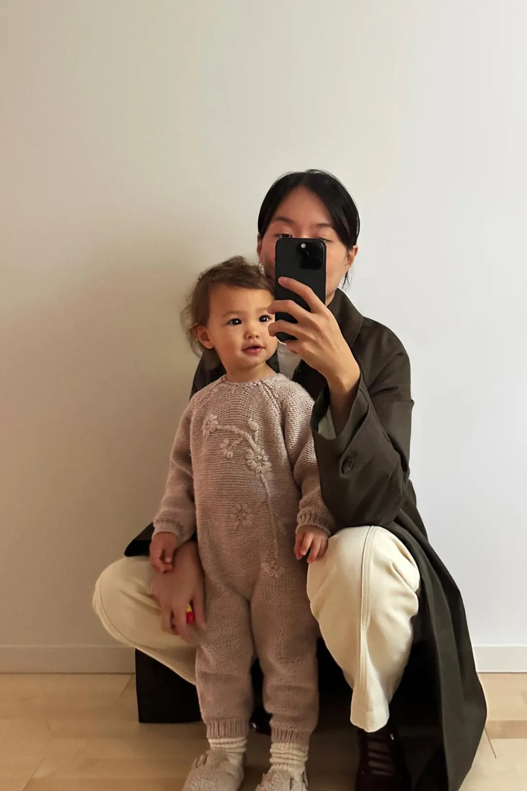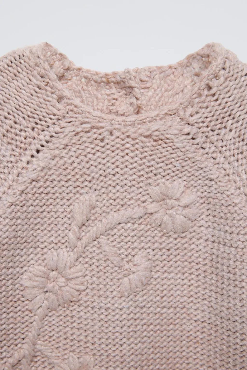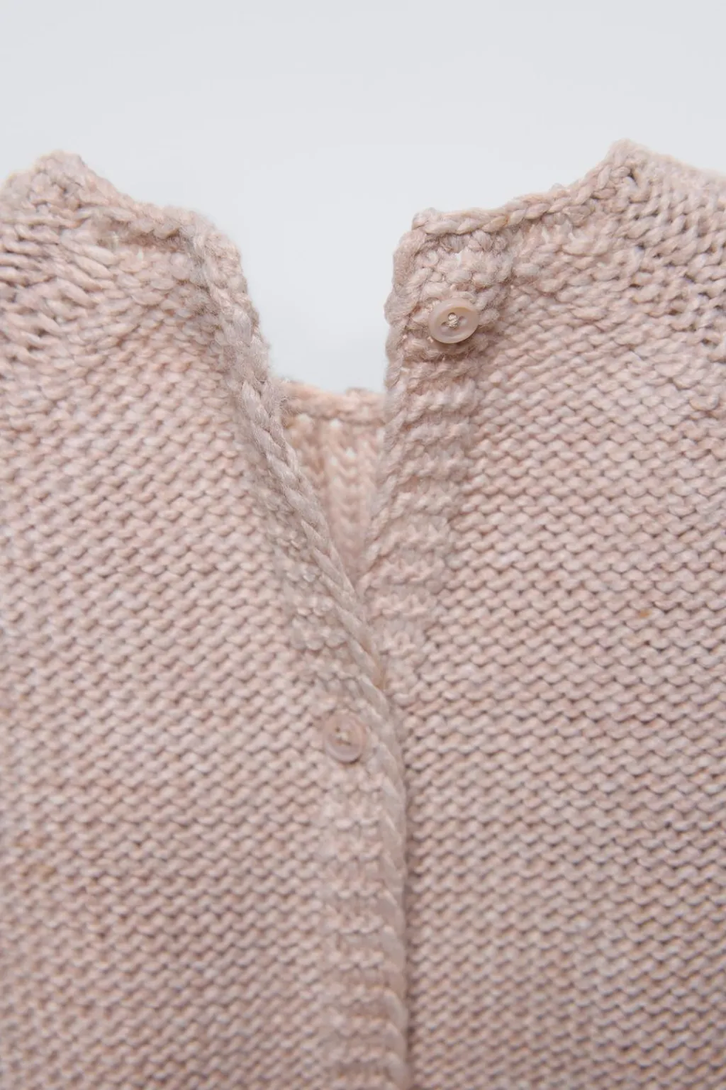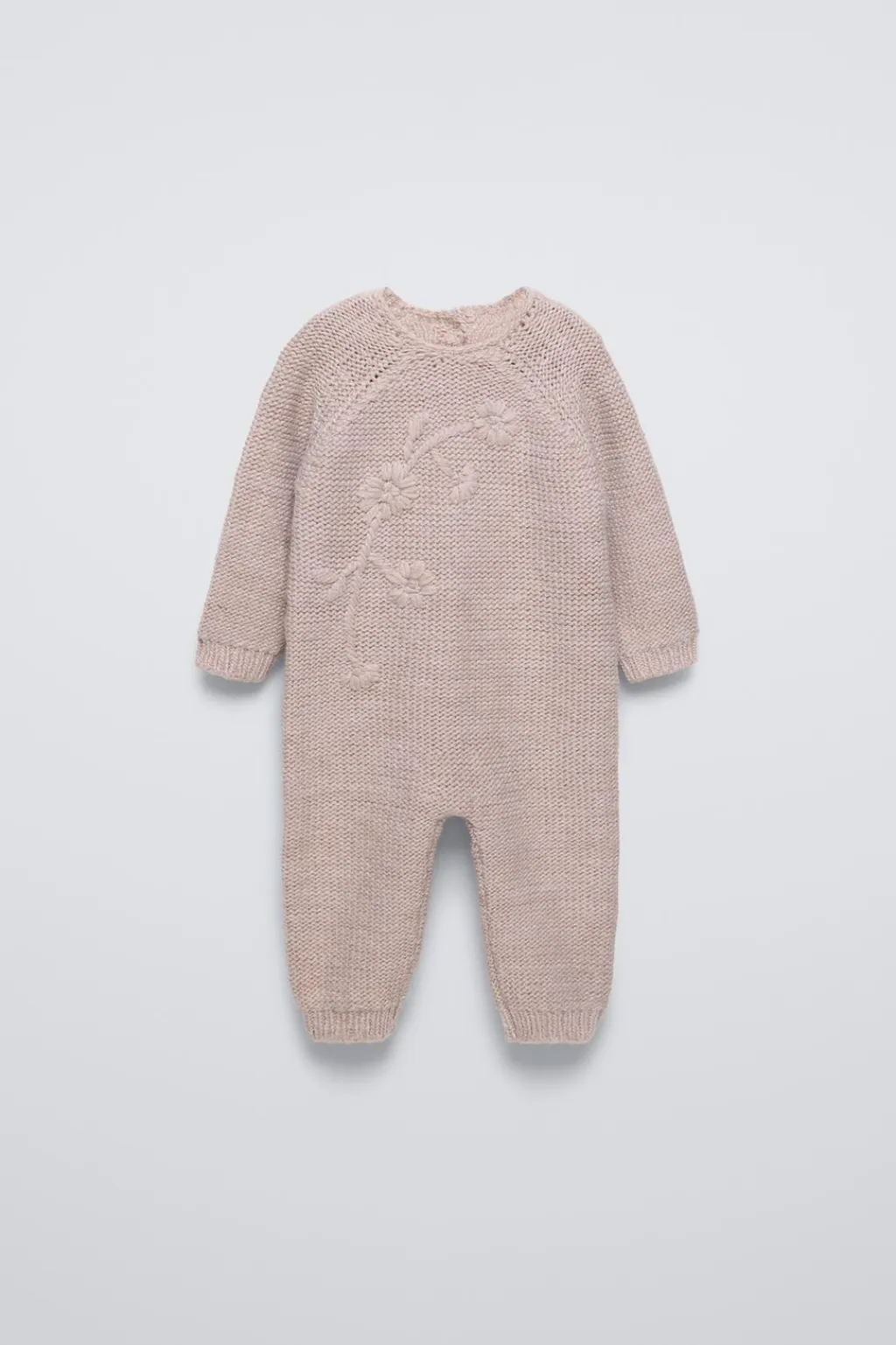 Mono de punto con cuello redondo y manga larga. Cierre botonadura en espalda. Detalle flores bordadas en delantero combinadas a tono.