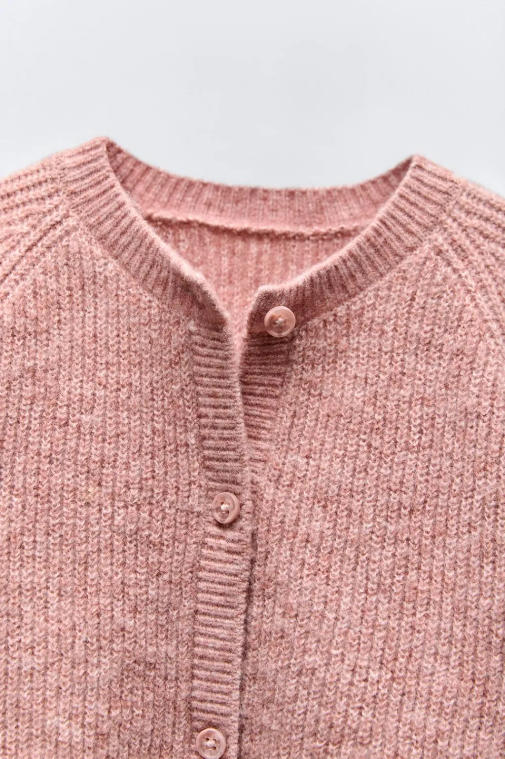 Chaqueta con cuello redondo y manga larga. Cierre con botonadura frontal.