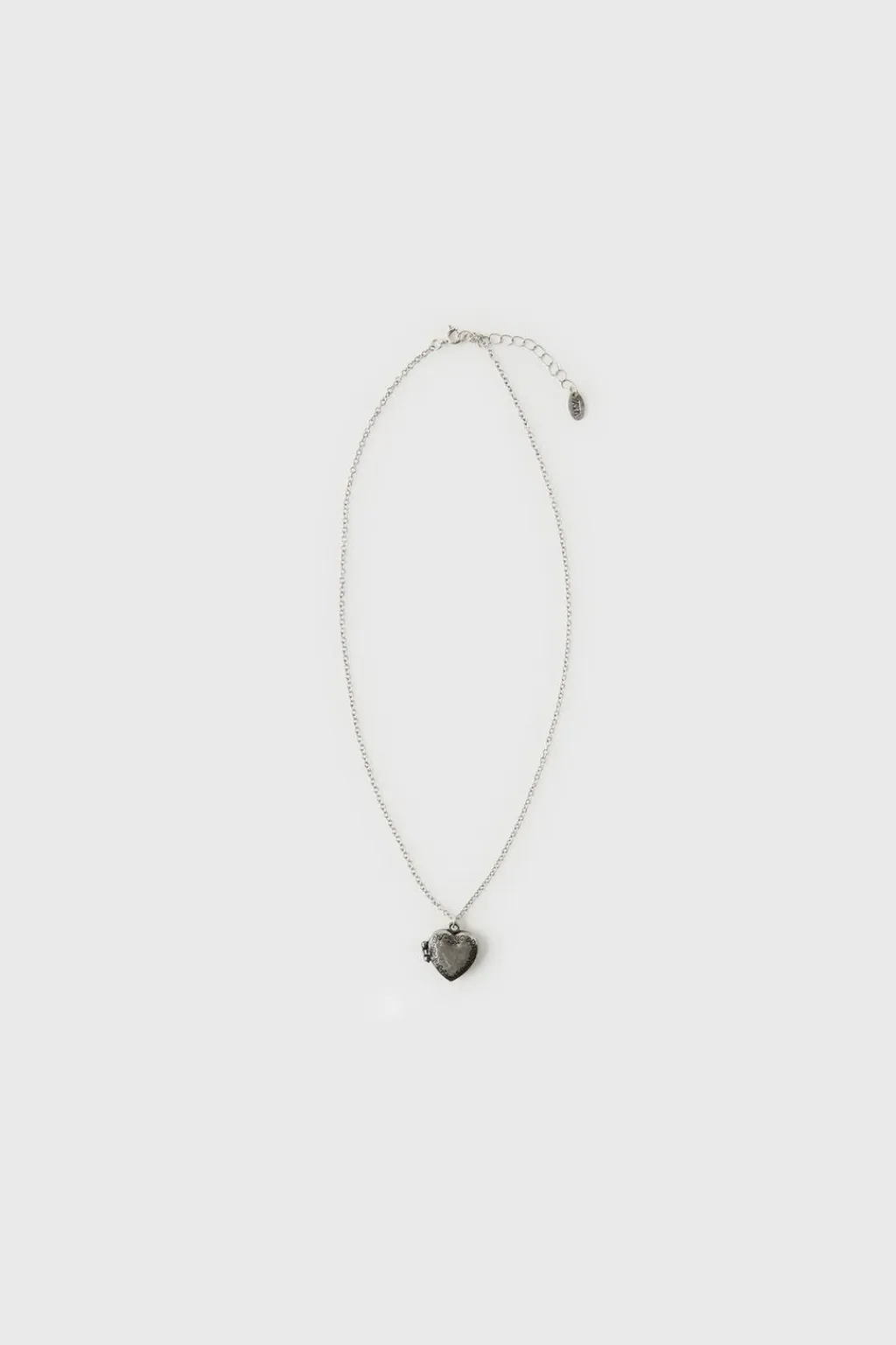 Collar con cierre ajustable en nuca. Colgante con forma de corazón tipo relicario.