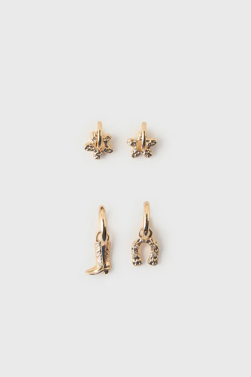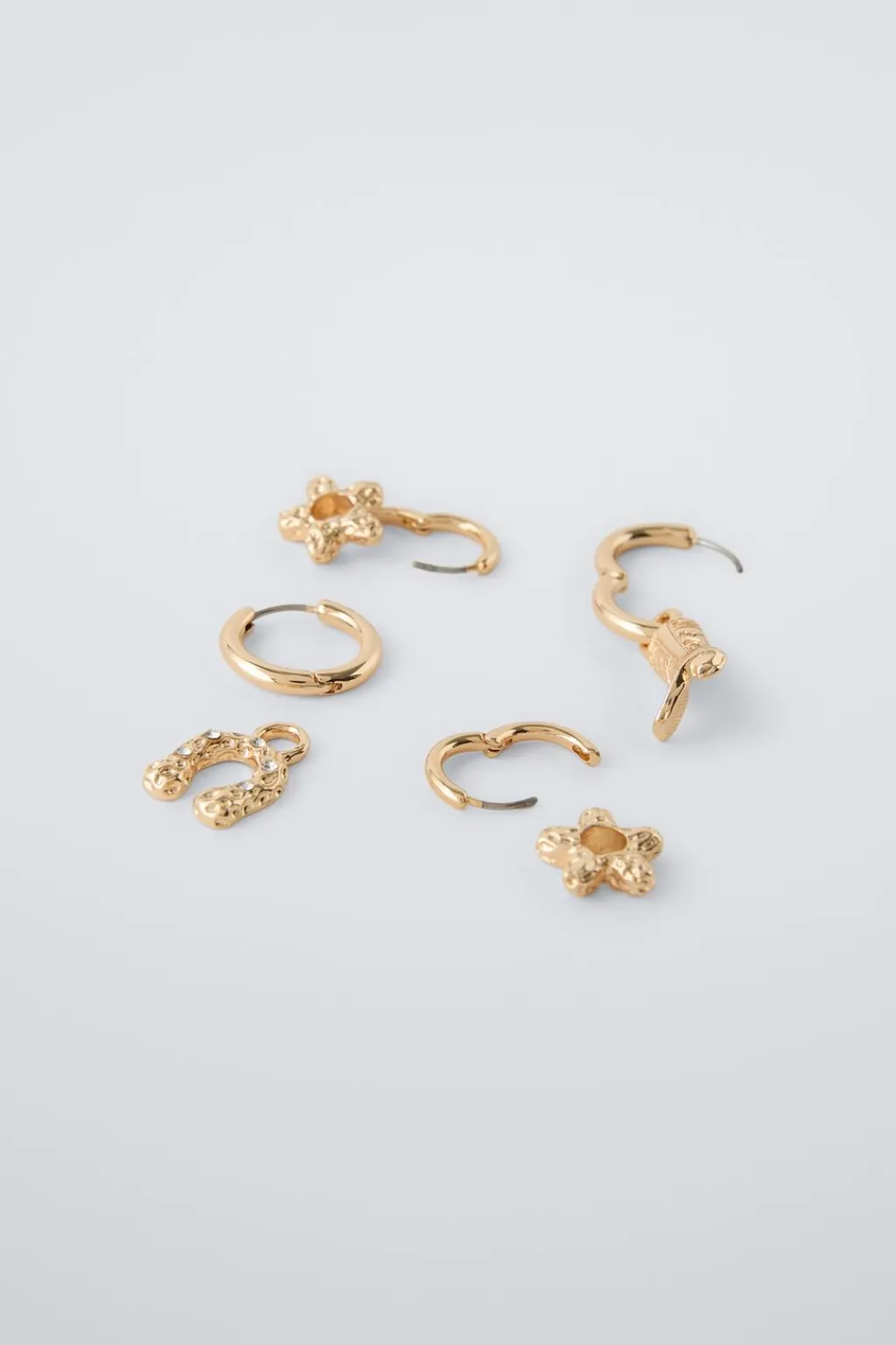 Pack de dos pares de pendientes con cierre presión. Detalle de charms con diferentes formas intercambiables.