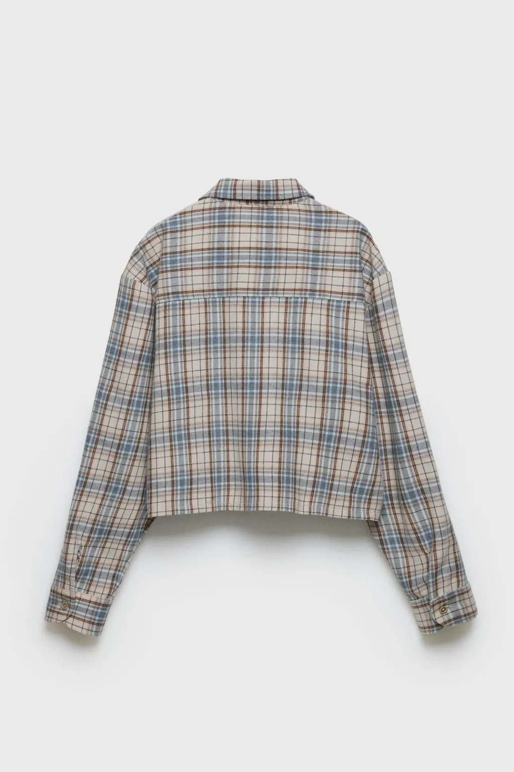 Camisa de cuadros con cuello camisero y manga larga acabada en cierre botón. Cierre botonadura frontal. Bolsillo de tipo plastrón en pechera.