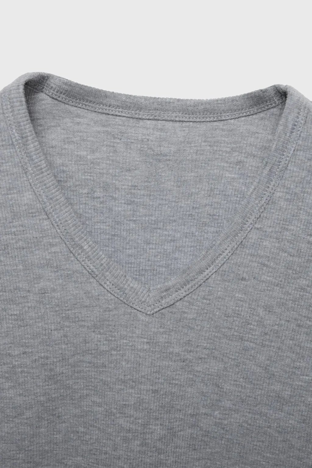 Camiseta de canalé con cuello pico y manga larga.